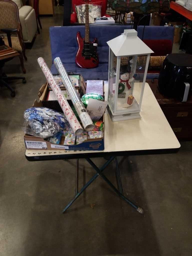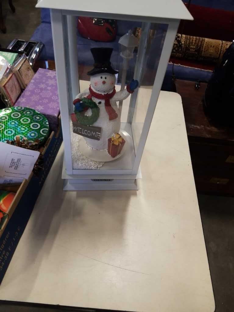 LIGHTS AND MUSIC SNOWMAN WITH SNOW BEADS AND TRAY OR PRESENT WRAPPING SUPPLIES