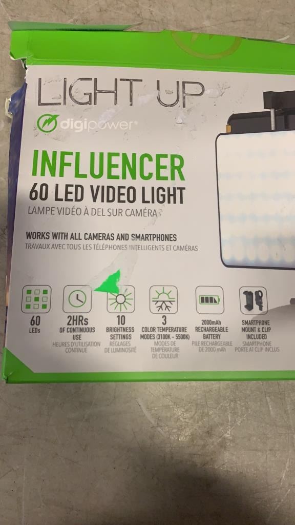 LIGHTUP INFLUENCER 60 LED VIDEO LIGHT - TESTED WORKING, RETAIL $49
