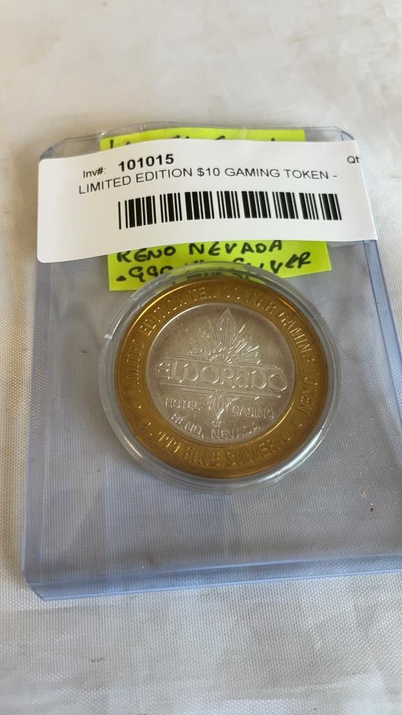 LIMITED EDITION $10 GAMING TOKEN - ELDORADO CASINO .999 FINE SILVER