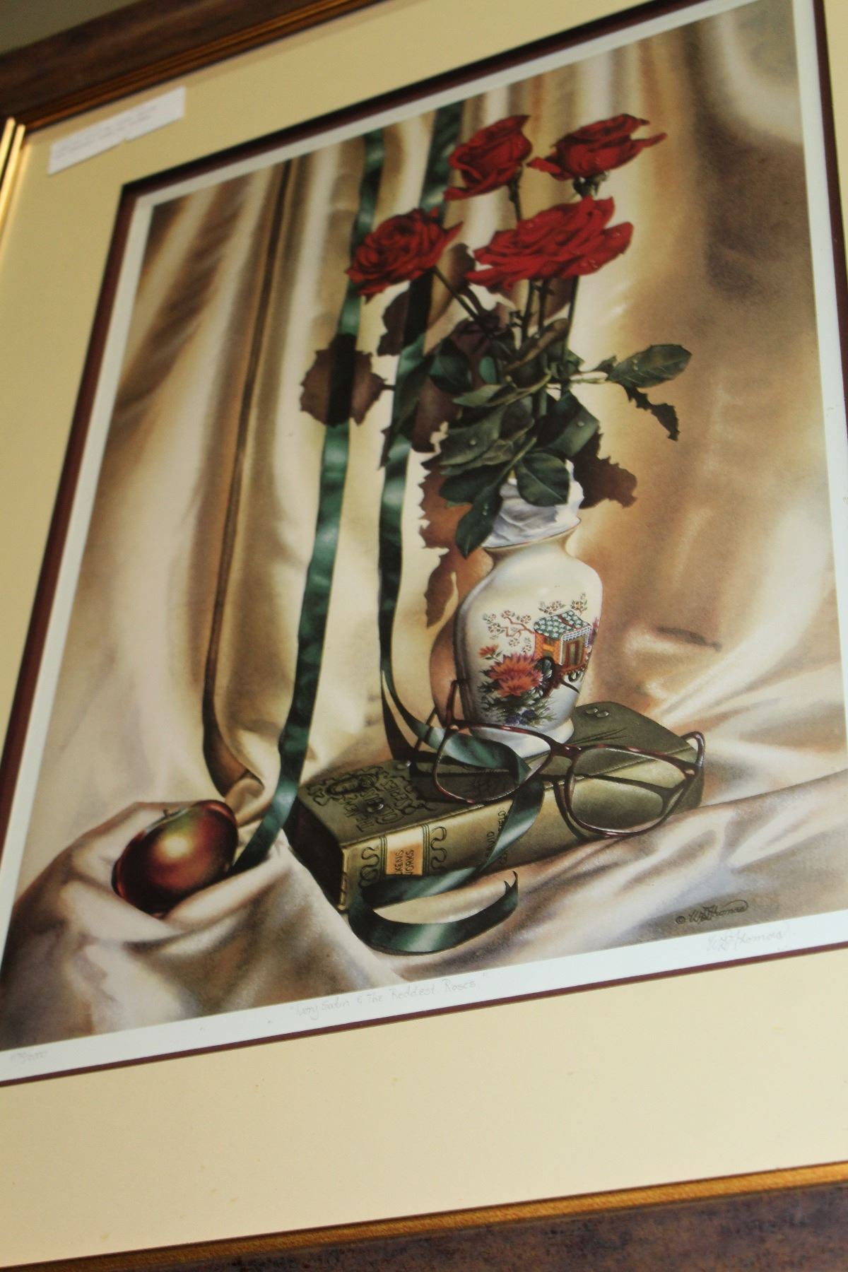 LIMITED EDITION IVORY SATIN AND REDDEST ROSE BY THOMAS