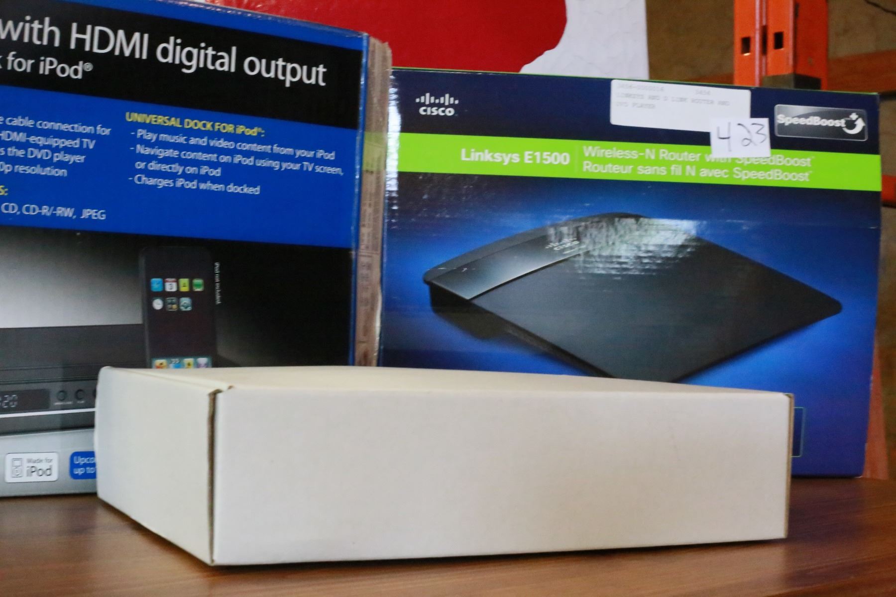LINKSYS AND D LINK ROUTER AND DVD PLAYER