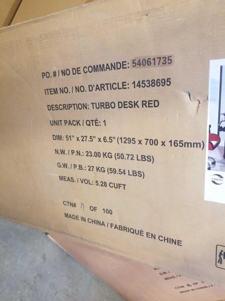 LINON TURBO DESK RED GAMING DESK - RETAIL $193