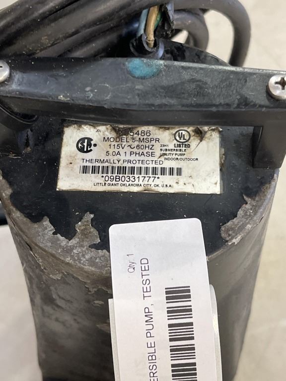 LITTLE GIANT SUBMERSIBLE PUMP, TESTED WORKING