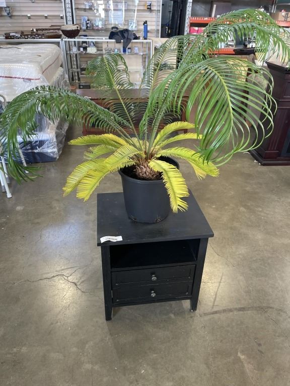 LIVE PALM TREE AND BLACK SIDE TABLE