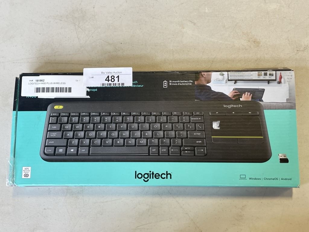 LOGITECH K400 PLUS WIRELESS KEYBOARD W/ TOUCHPAD - TESTED WORKING
