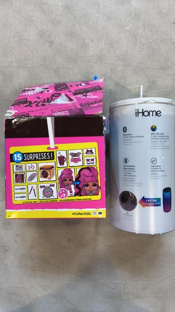 LOL SURPRISE REMIX SPEAKER AND IHOME PLAY GLOW SPEAKER