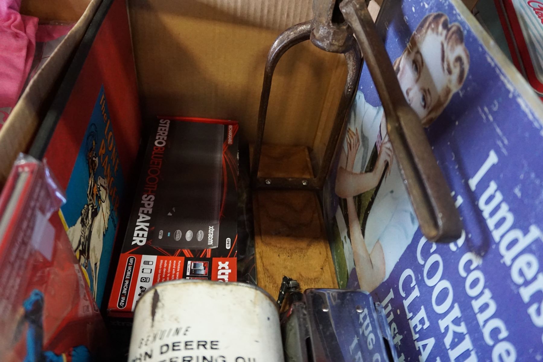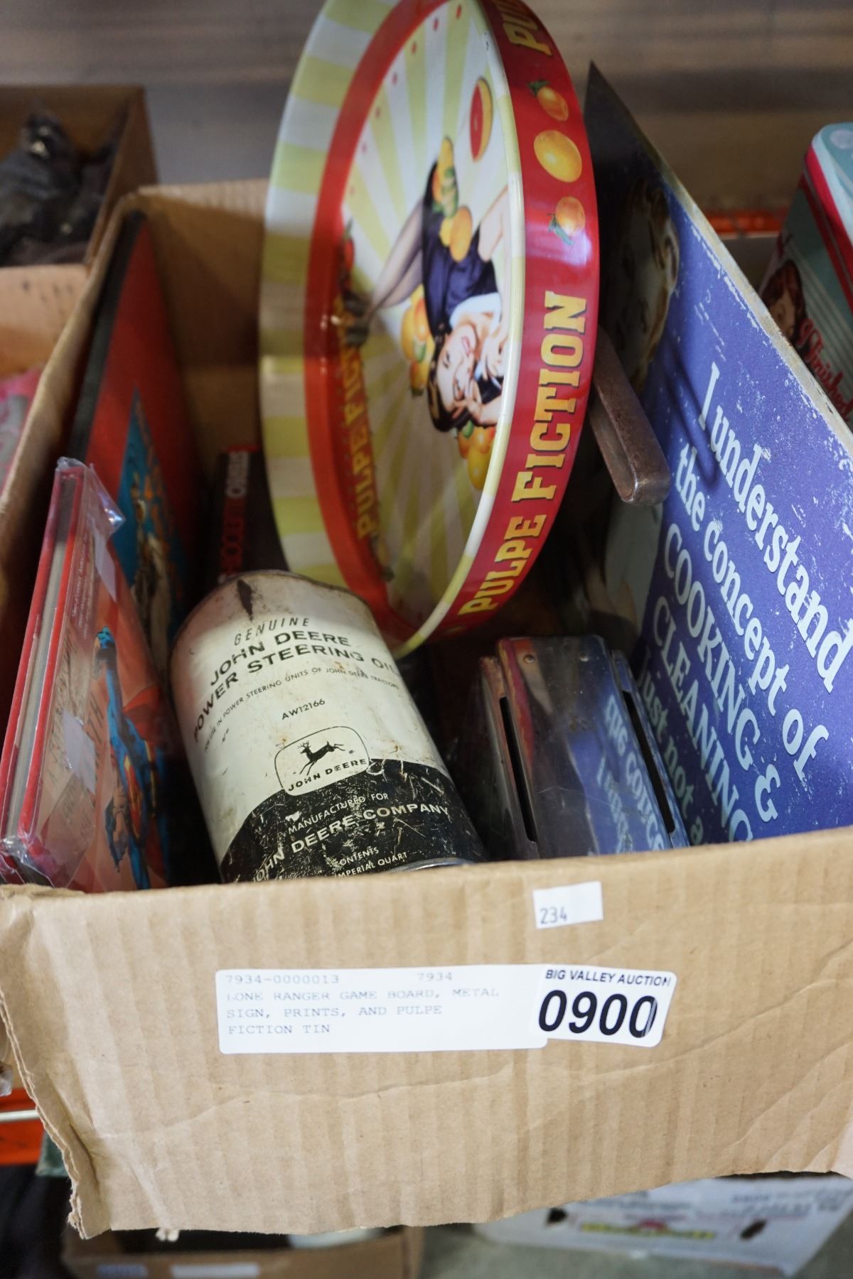 LONE RANGER GAME BOARD, METAL SIGN, PRINTS, AND PULPE FICTION TIN