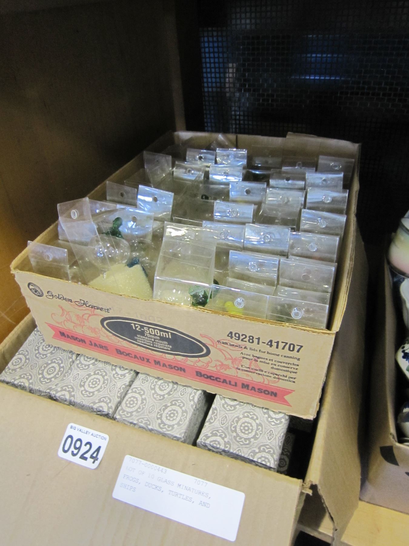 LOT OF 10 GLASS MINATURES, FROGS, DUCKS, TURTLES, AND SHIPS