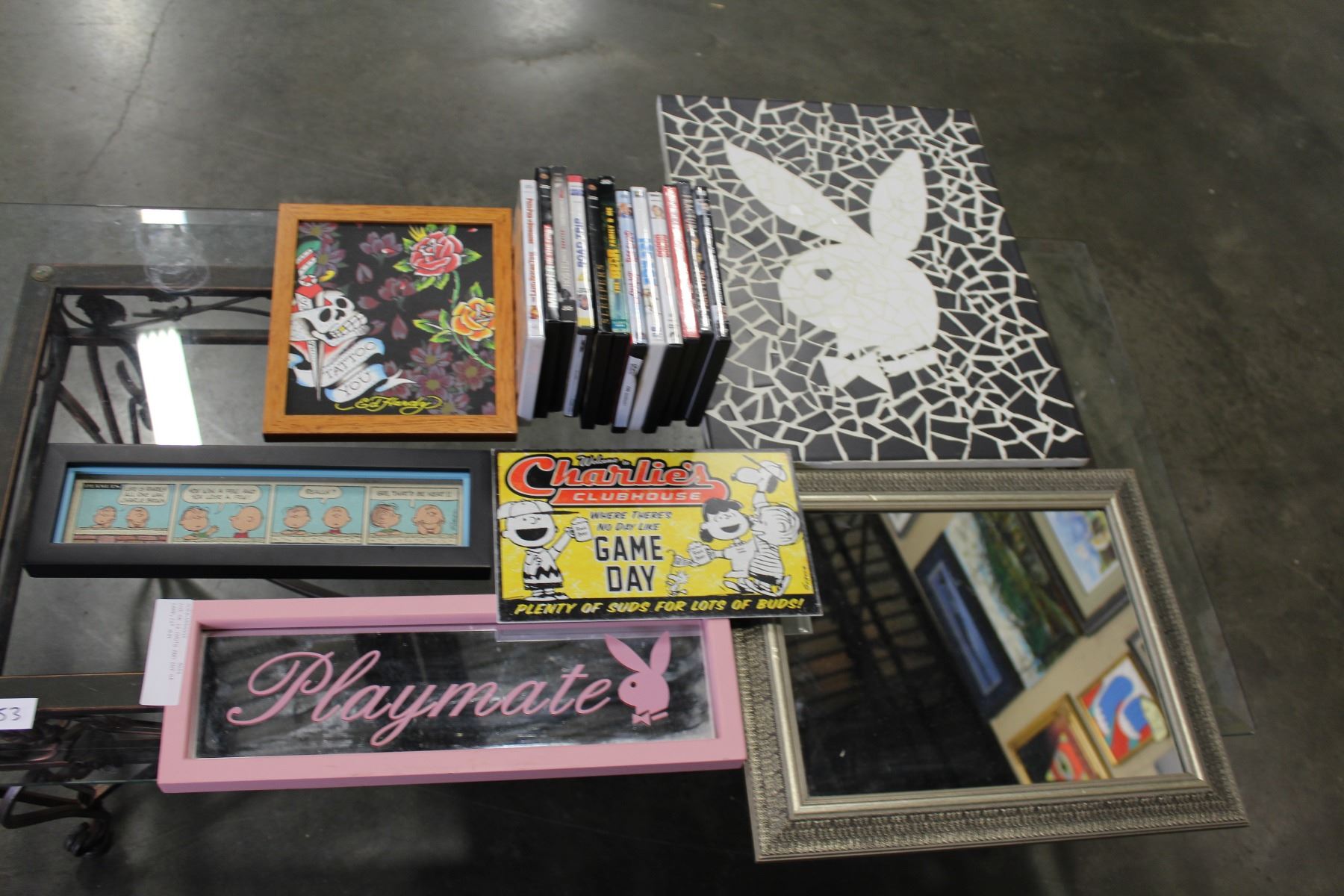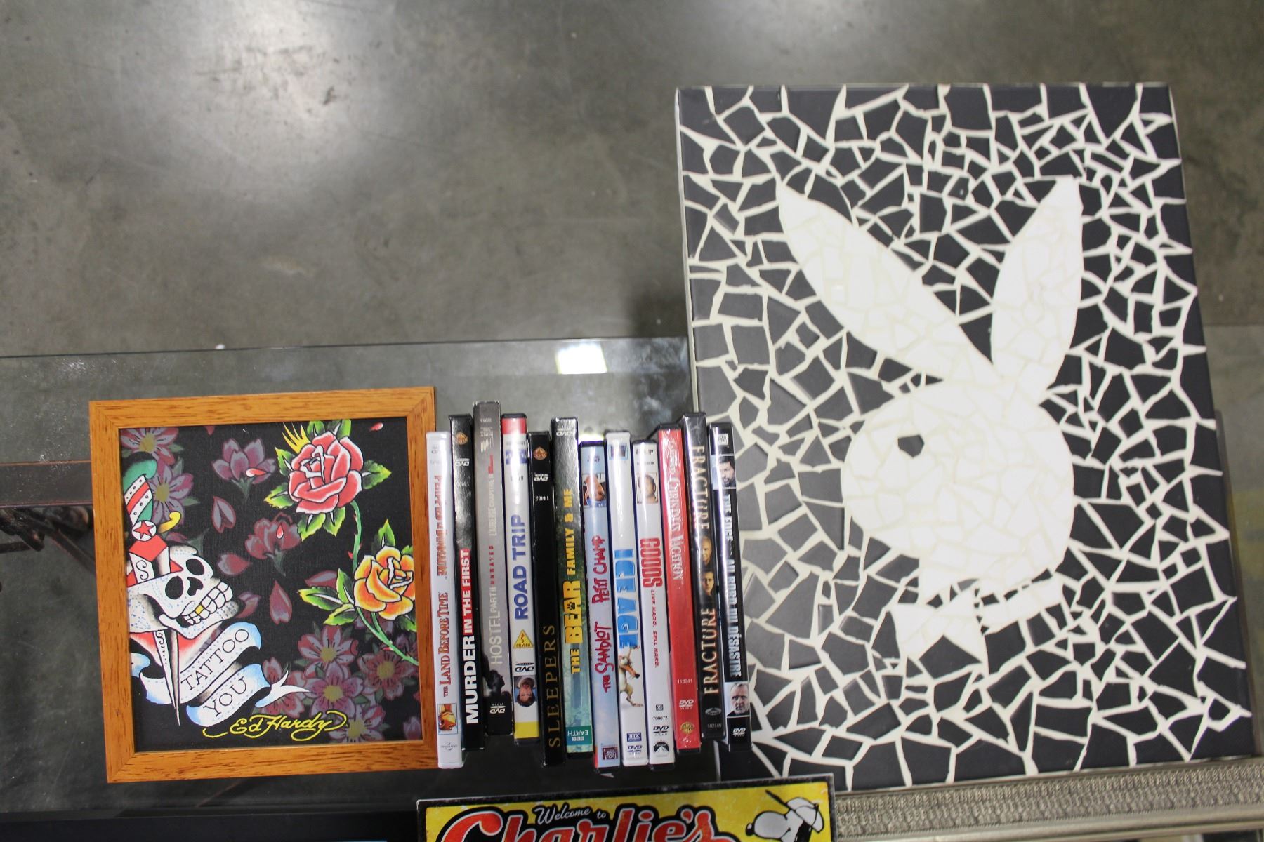 LOT OF 12 DVD'S AND LOT OF PRINTS AND MIRROR