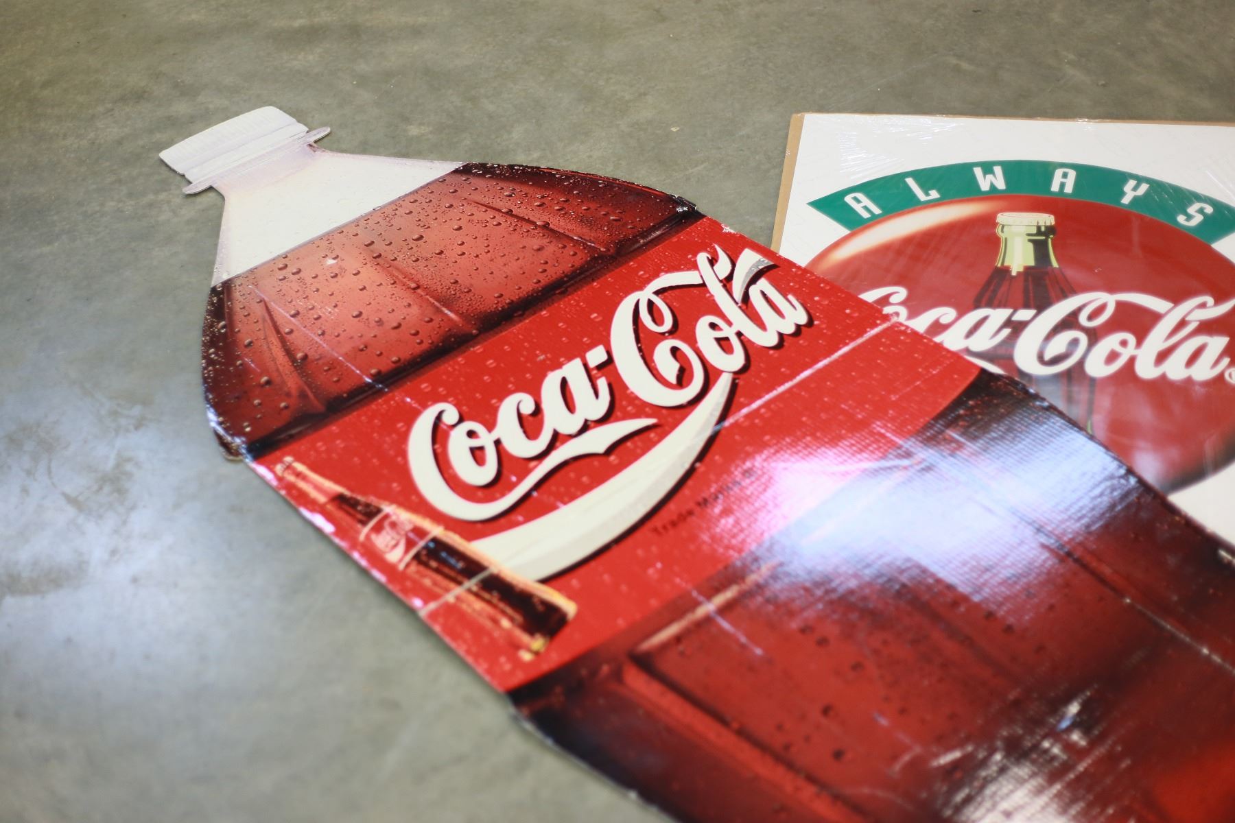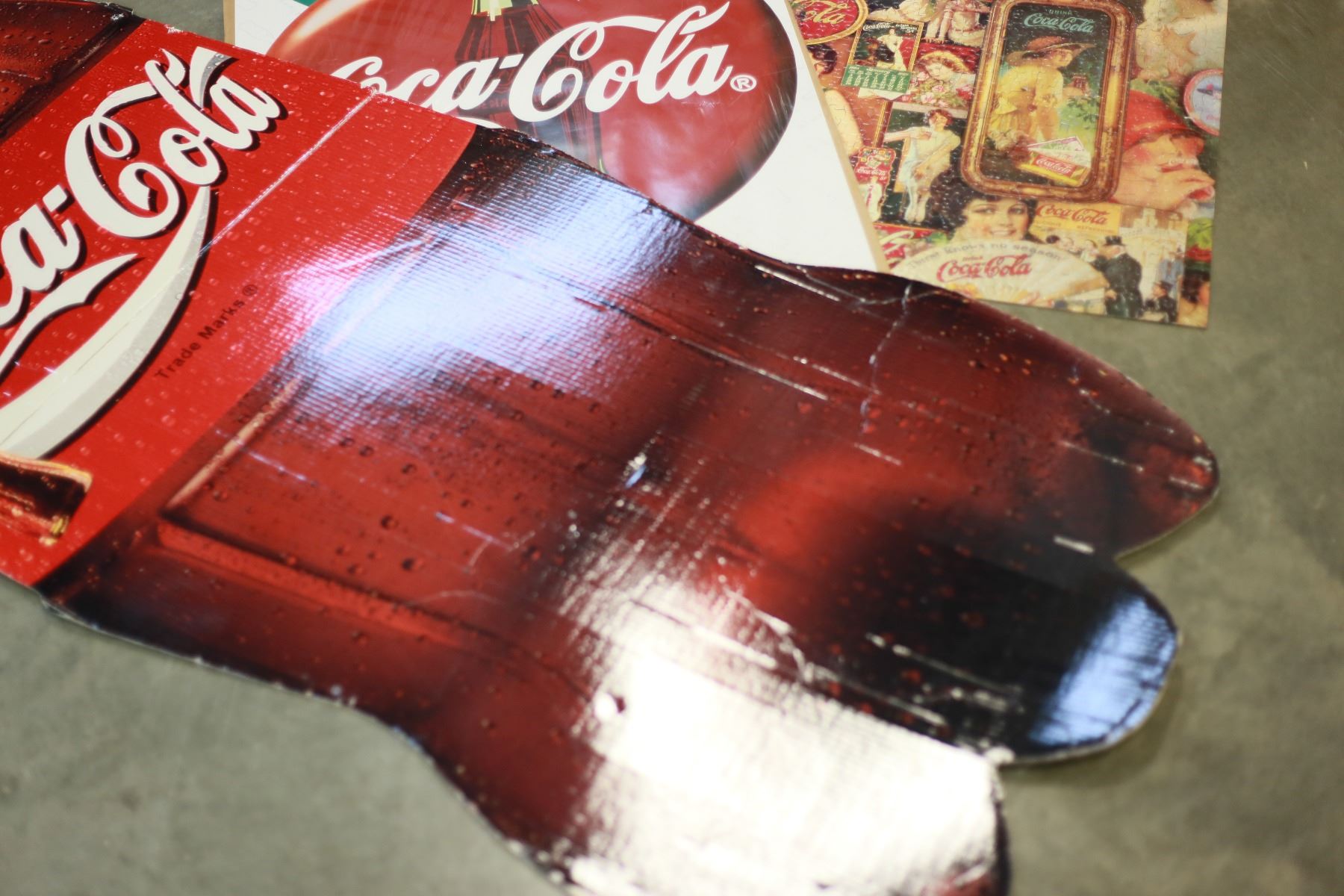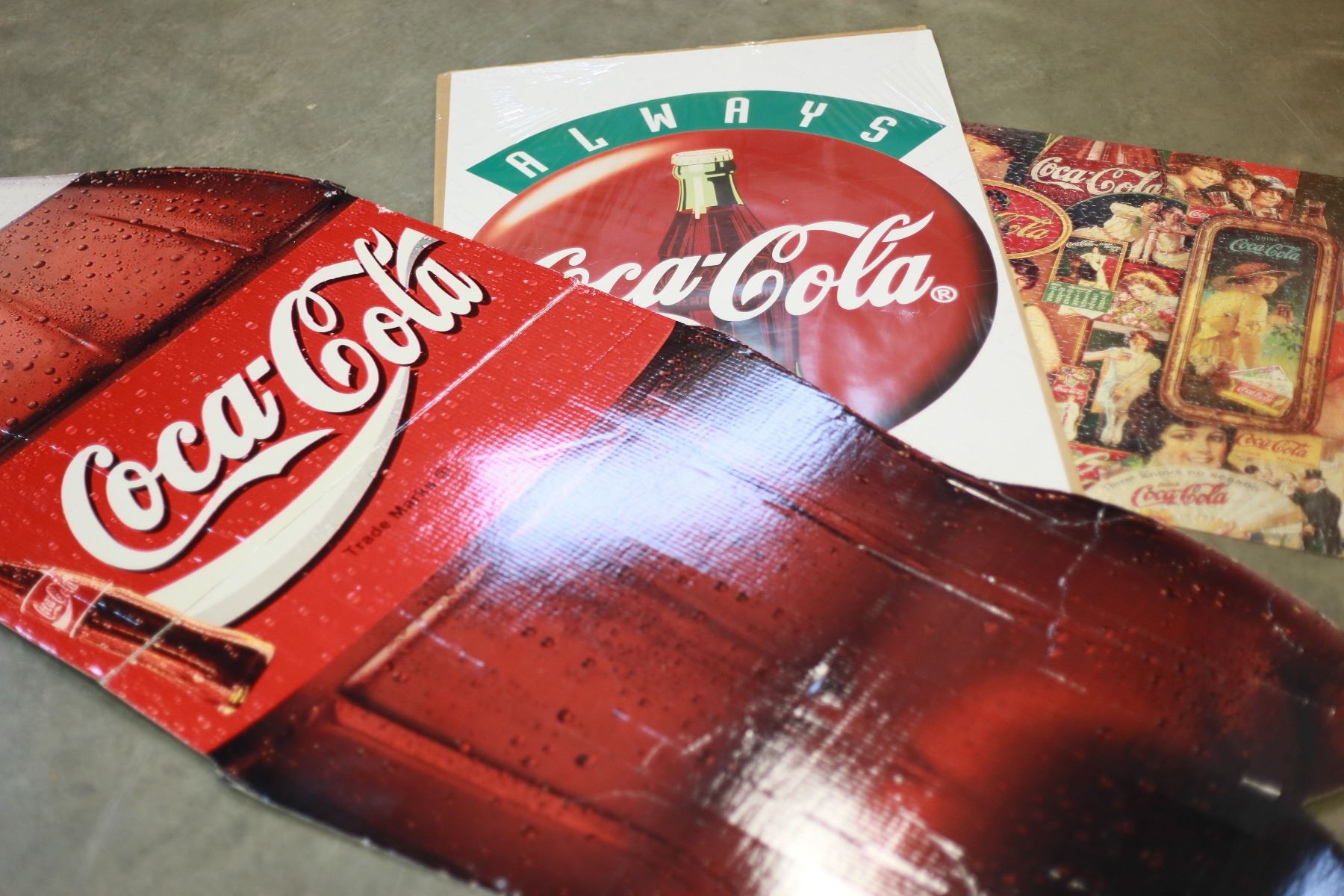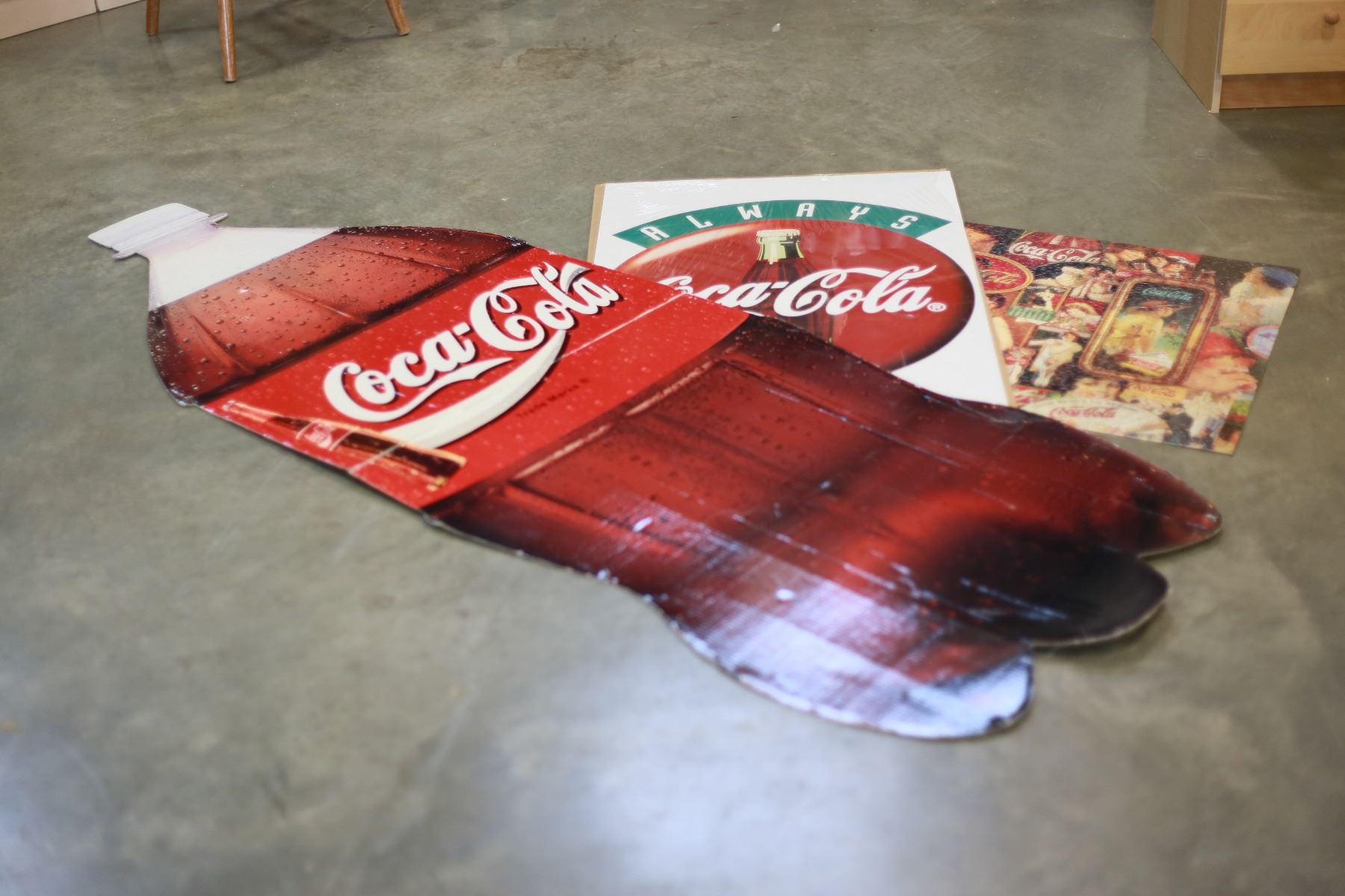 LOT OF 2 COCA COLA SIGNS AND GLUED PUZZLE