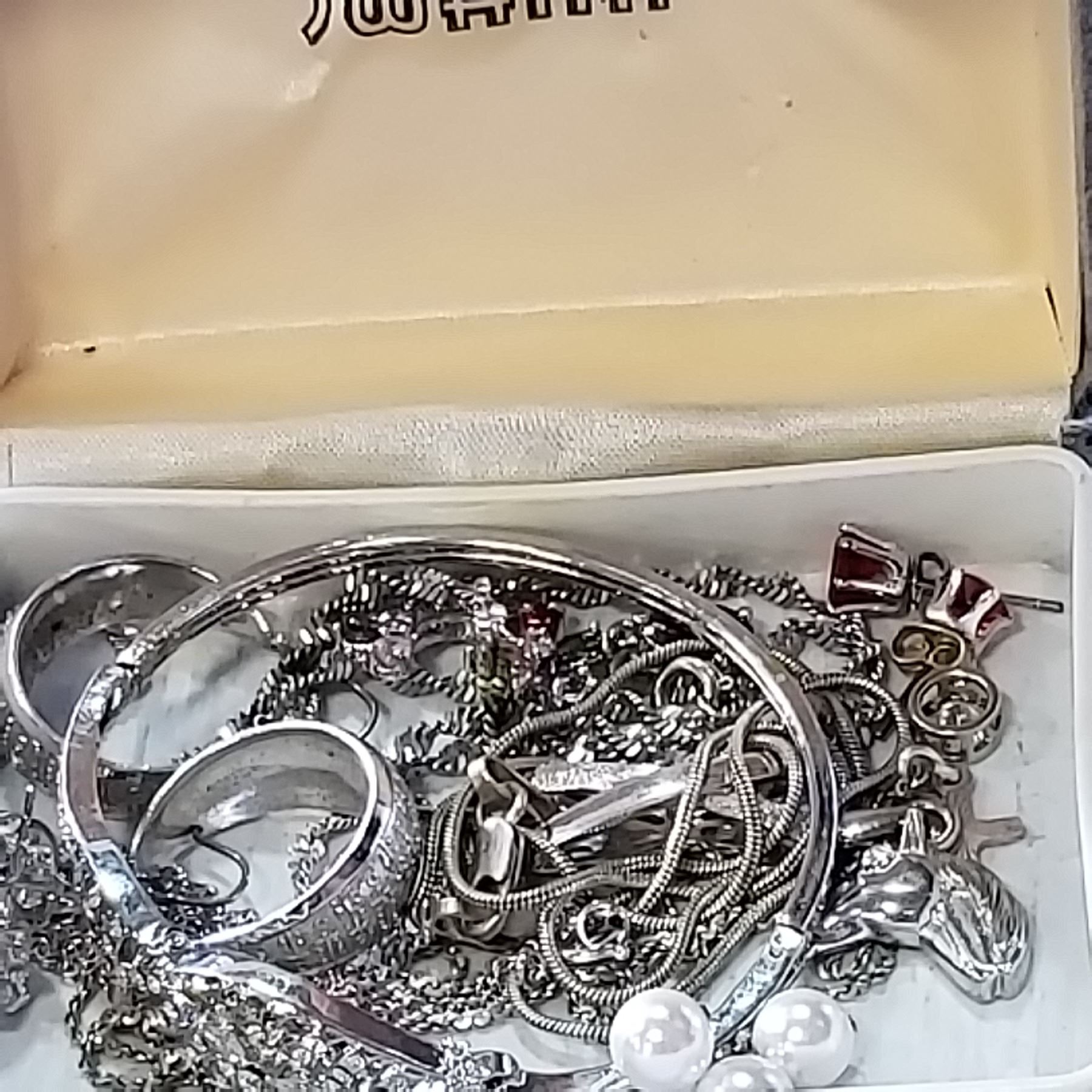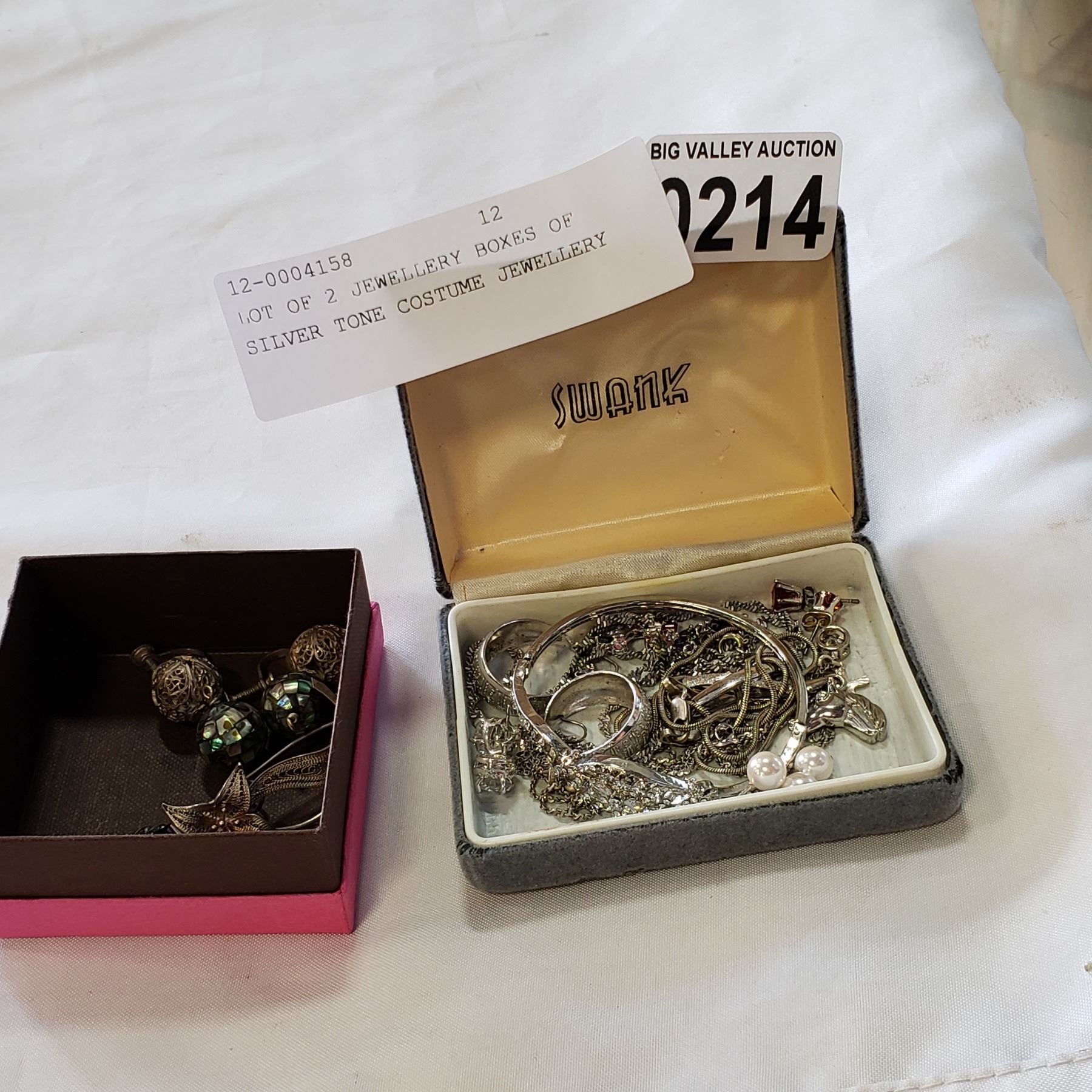 LOT OF 2 JEWELLERY BOXES OF SILVER TONE COSTUME JEWELLERY