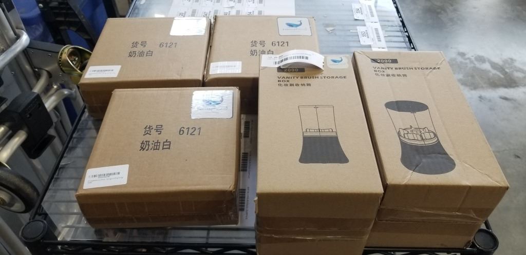 LOT OF 2 NEW VANITY BRUSH STORAGE BOX AND 3 EARRINGS AND RING STORAGE BOX