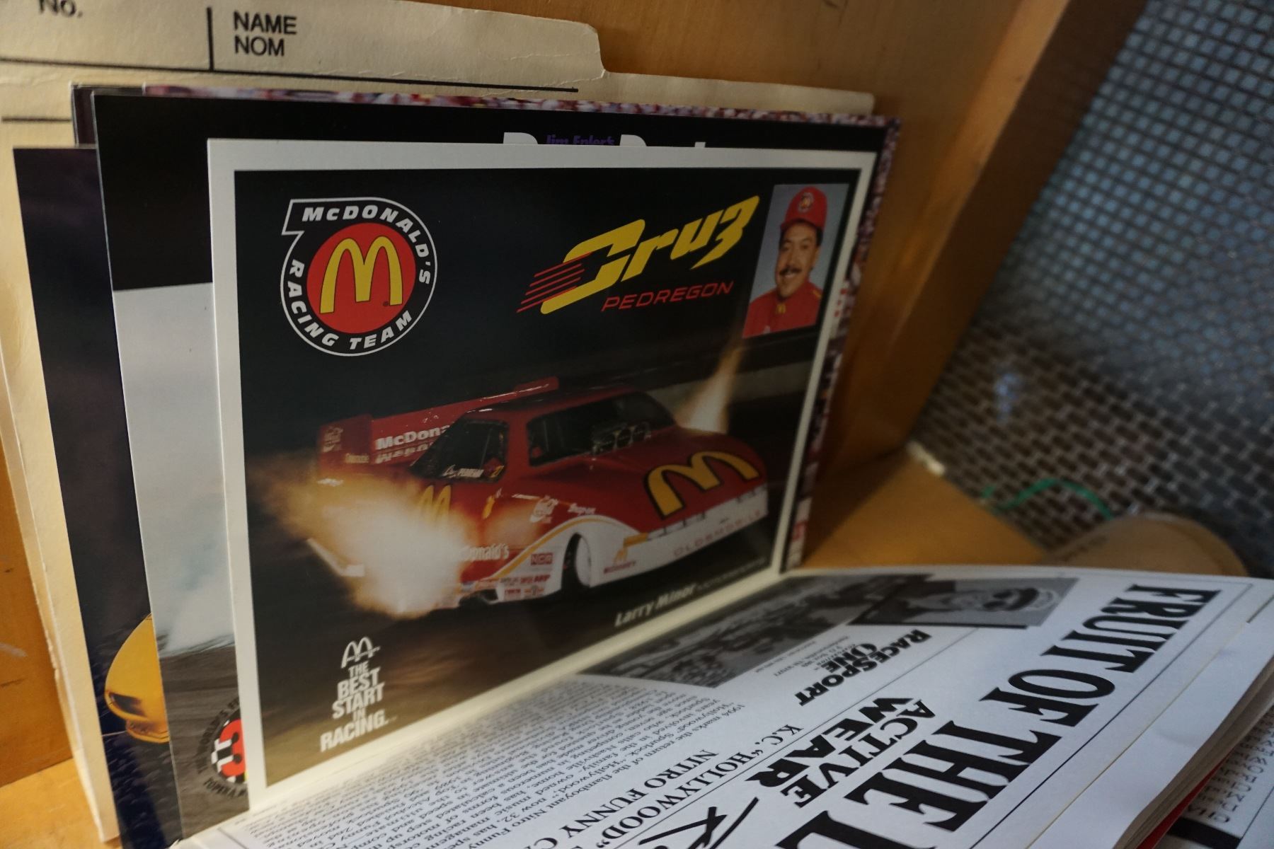 LOT OF 2 NHRA RACING POSTERS IN TUBES AND 2 FILES OF PROMO CARDS