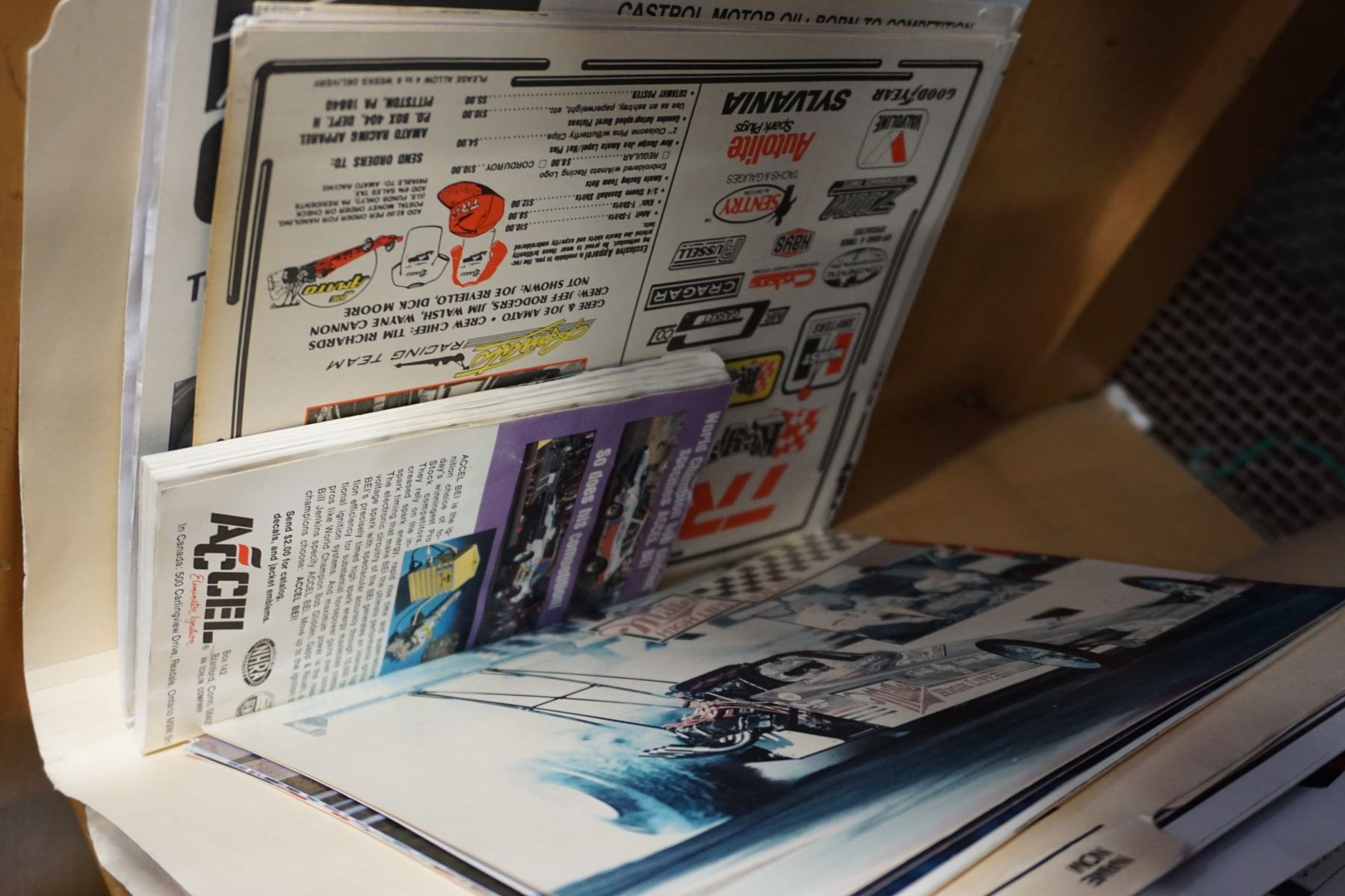 LOT OF 2 NHRA RACING POSTERS IN TUBES AND 2 FILES OF PROMO CARDS