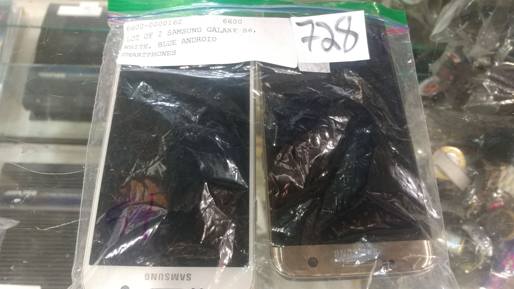 LOT OF 2 SAMSUNG GALAXY S6, WHITE, BLUE ANDROID SMARTPHONES