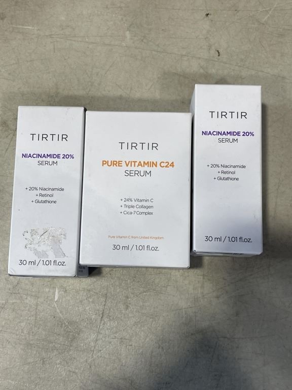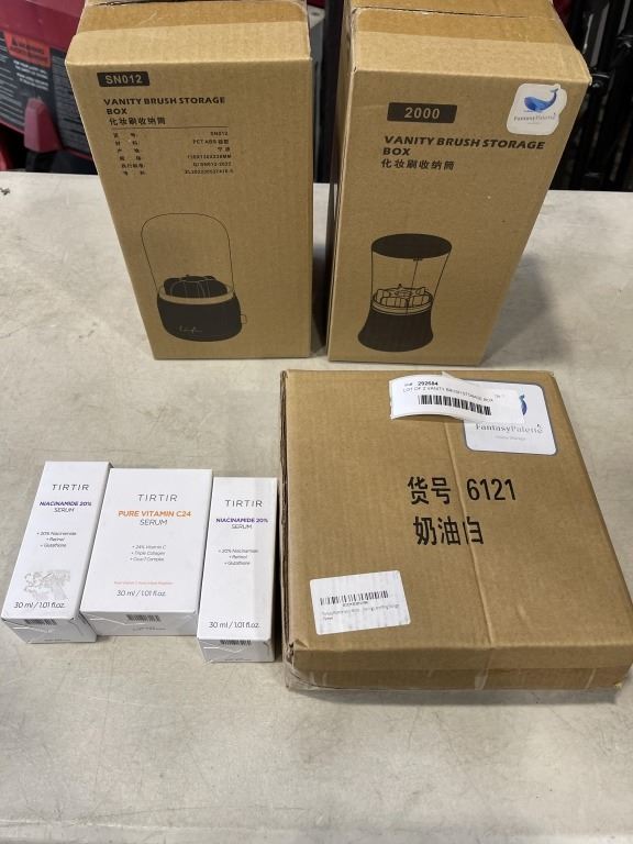LOT OF 2 VANITY BRUSH STORAGE BOX AND W STORAGE BOX FOR EARRINGS AND RING AND TIRTIR NIACINAMIDE SERUM AND TIRTIR PURE VITAMIN C24 SERUM