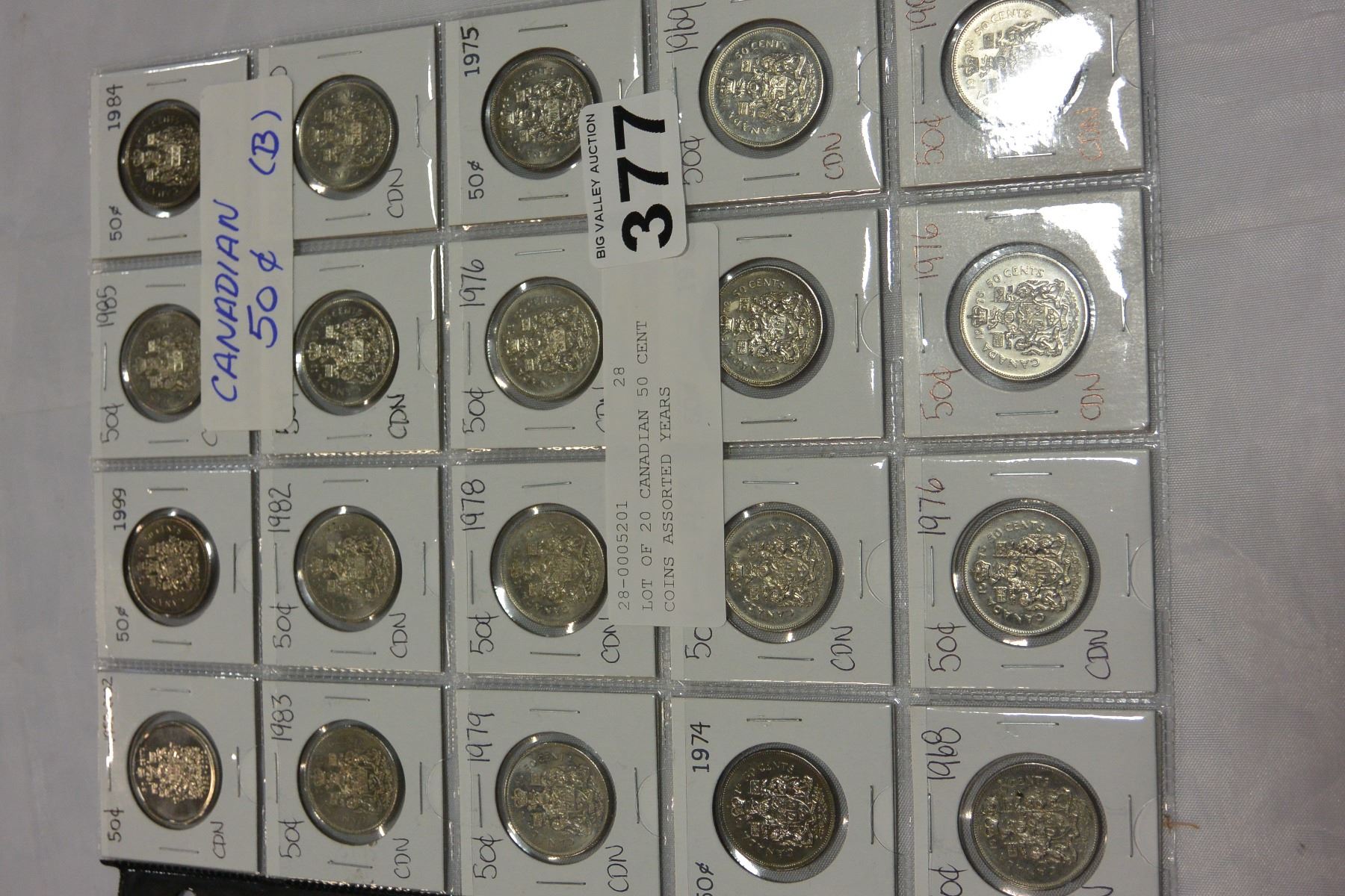 LOT OF 20 CANADIAN 50 CENT COINS ASSORTED YEARS