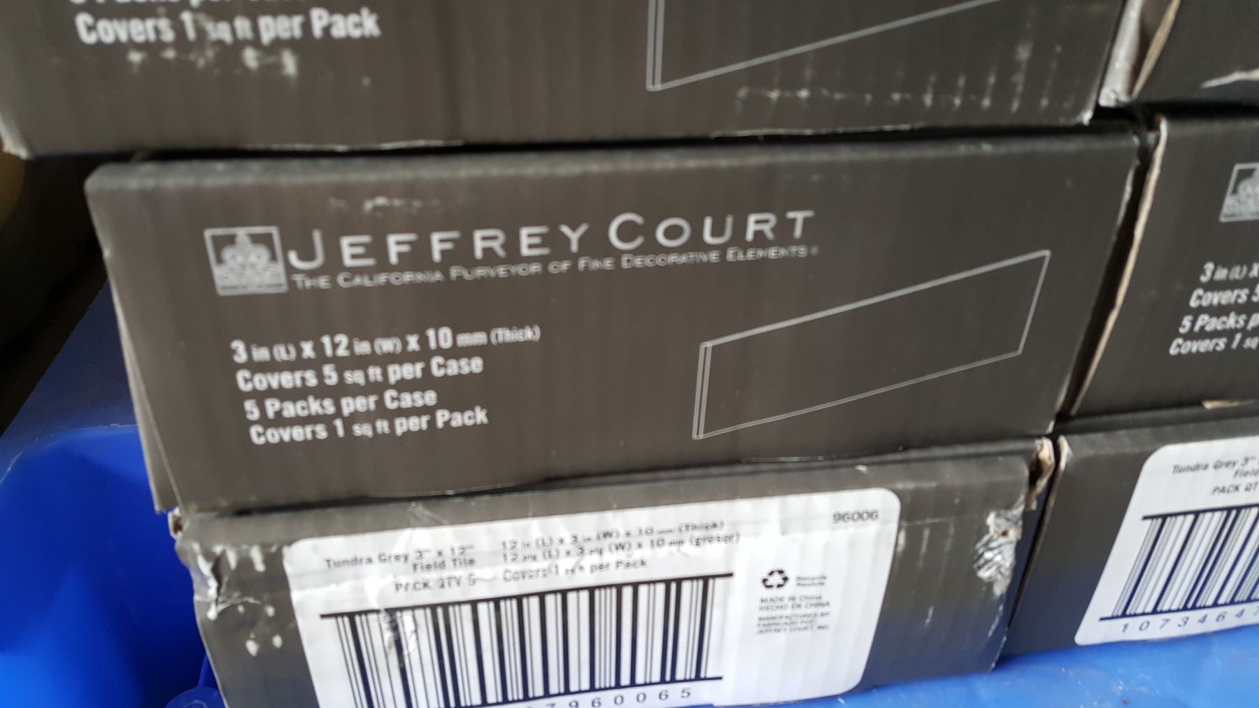 LOT OF 29 CASES JEFFREY COURT TUNDRA GREY 3" X 12" FIELD TILE COVERS 5 SQUARE FEET PER CASE