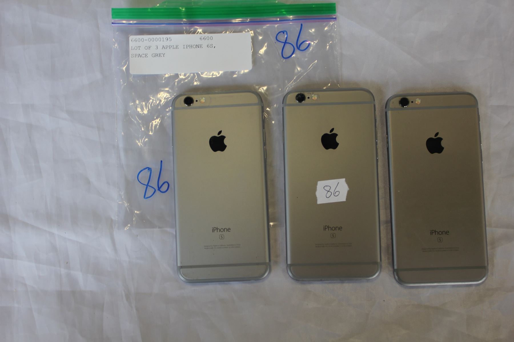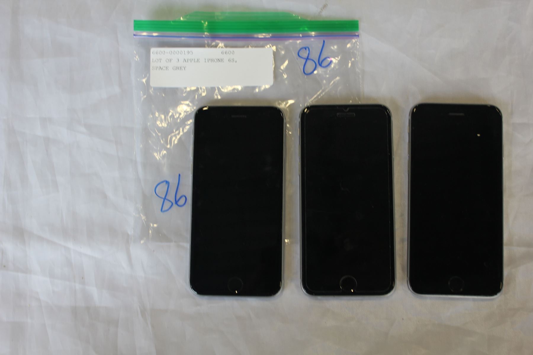 LOT OF 3 APPLE IPHONE 6S, SPACE GREY, PREVIEW STRONGLY RECOMMENDED, ALL ITEMS ARE FINAL SALE, BUYER BEWARE, ITEMS MAY BE FOR PARTS OR REPAIR