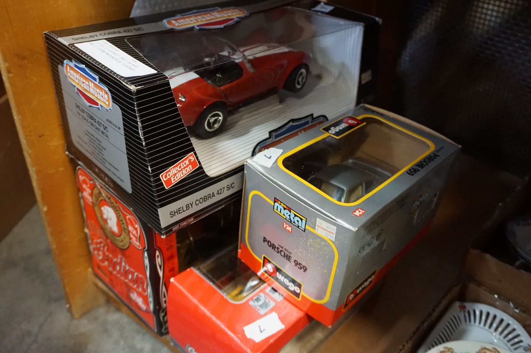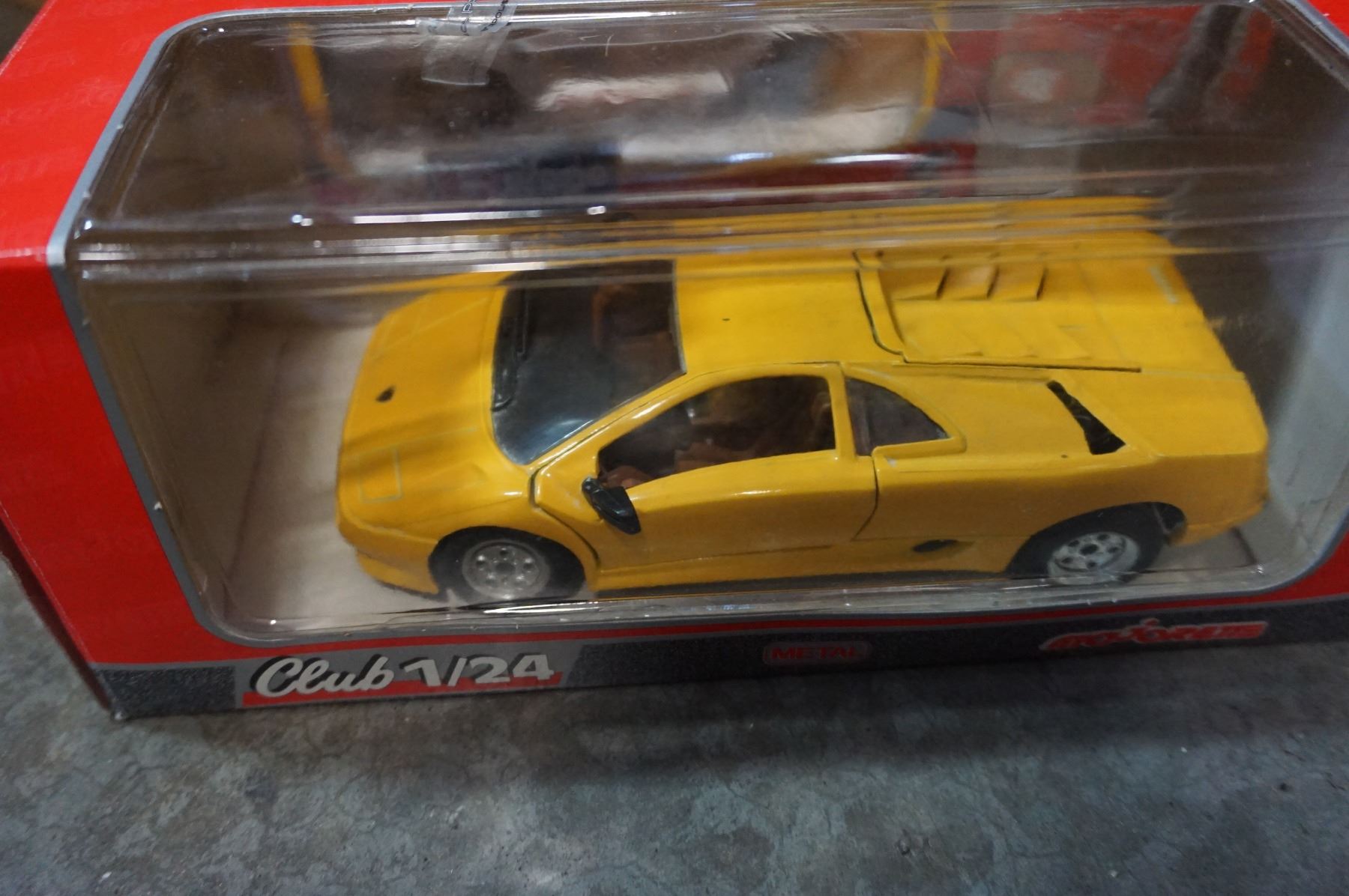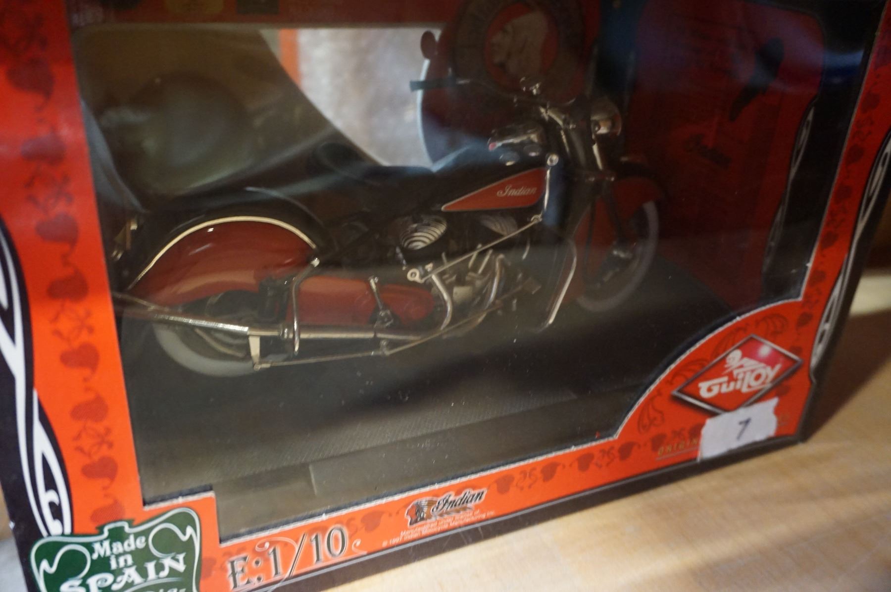 LOT OF 3 DIECAST CARS IN BOX AND 1 IDIAN MOTORCYCLE DIECAST
