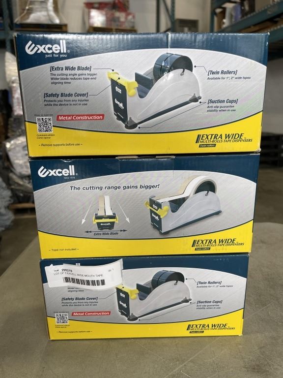 LOT OF 3 EXCELL WIDE MOUTH TAPE DISPENSERS