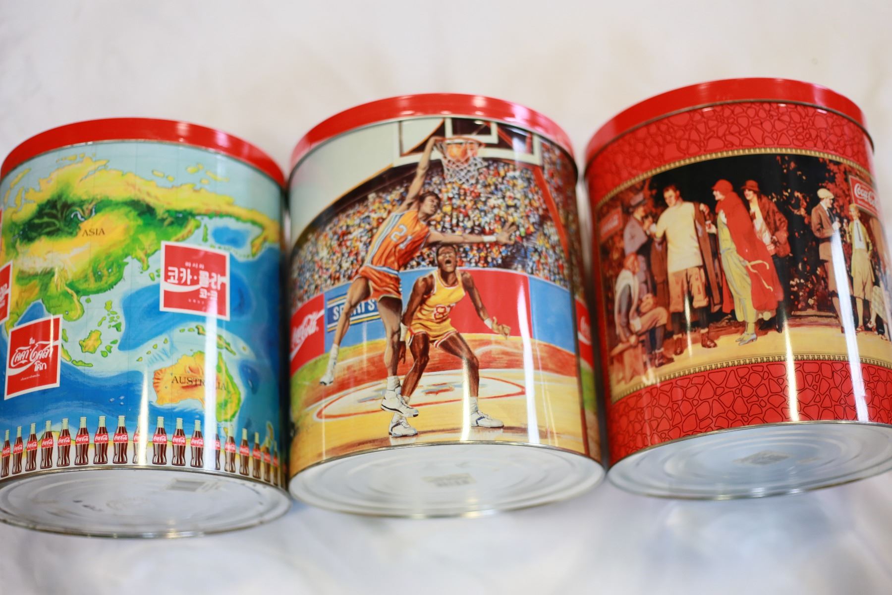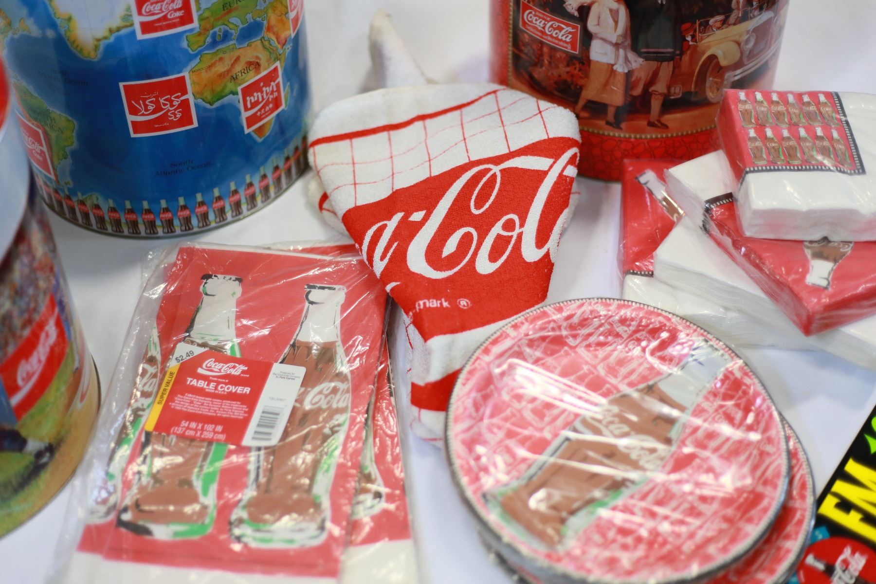 LOT OF 3 LARGE POPCORN TINS NAPKINS TABLE CLOTHS PAPER PLATES AND HAND TOWELS
