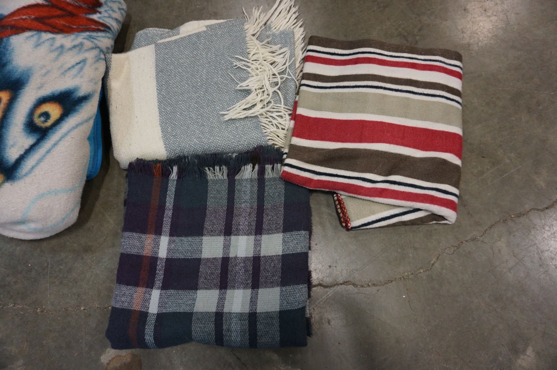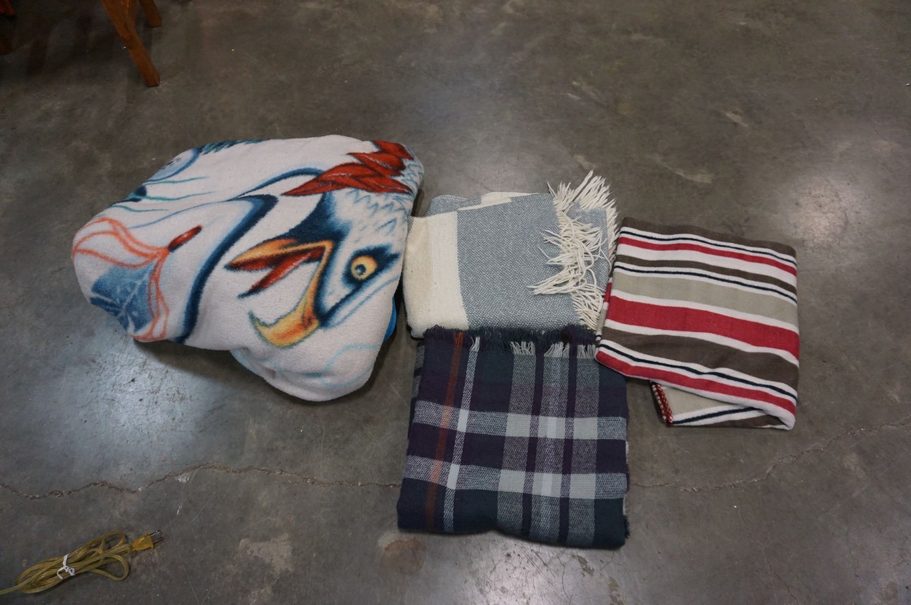 LOT OF 3 SMALL THROW BLANKETS AND 1 QUEENSIZE EAGLE BLANKET