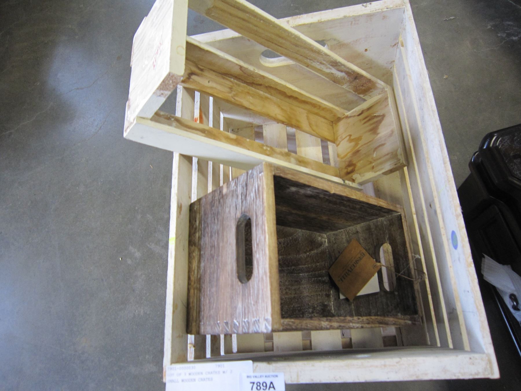 LOT OF 3 WOODEN CRATES W/ 2 SMALL WOODEN CRATES