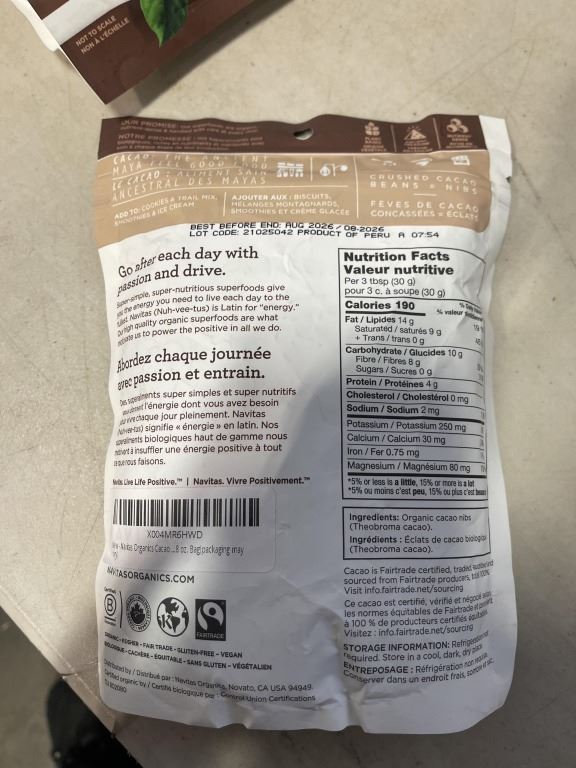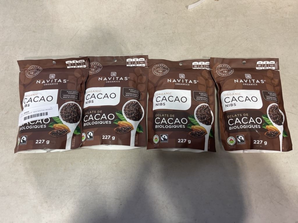 LOT OF 4 BAGS OF NEW NAVITAS ORGANIC CACAO NIBS