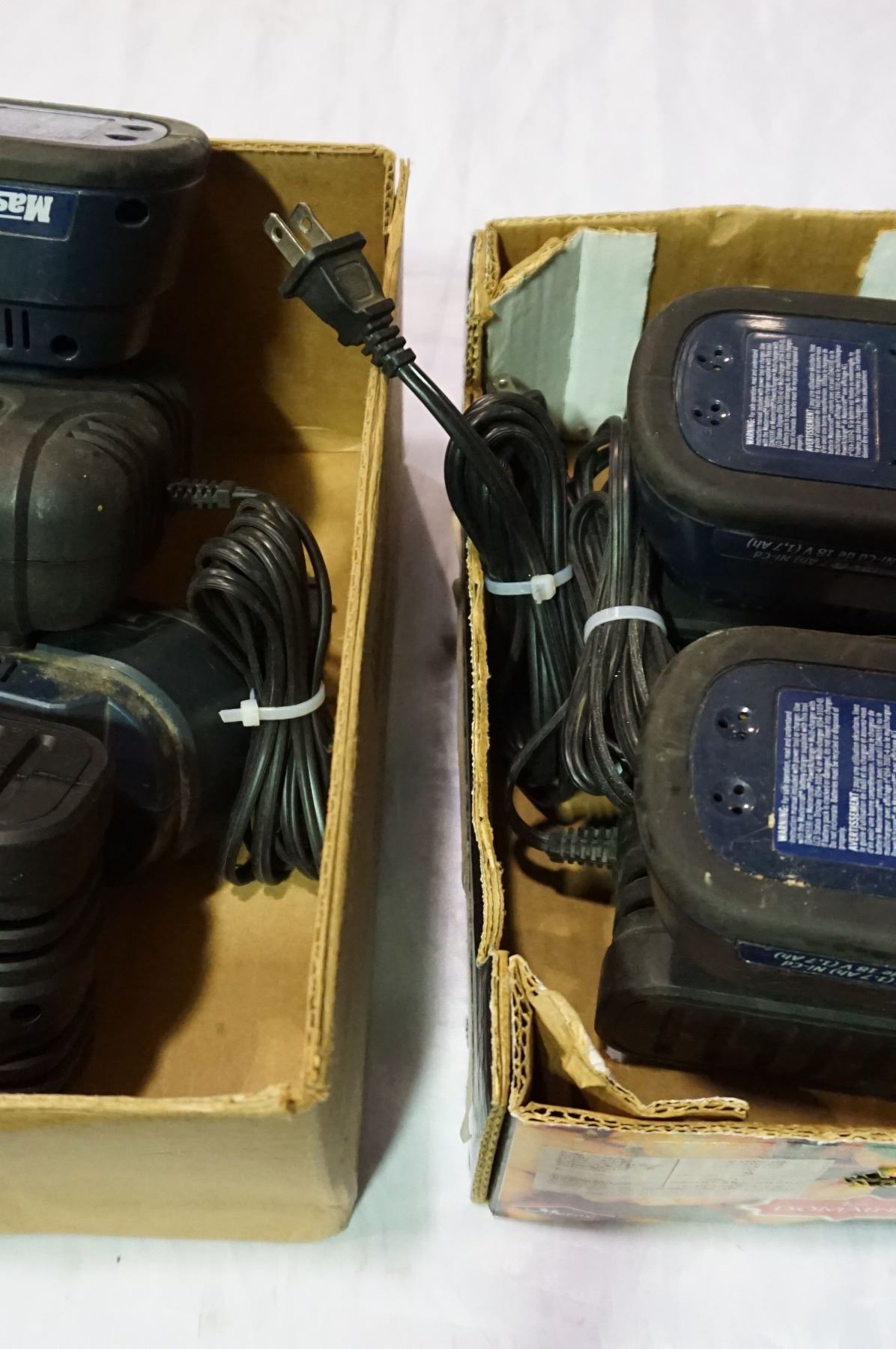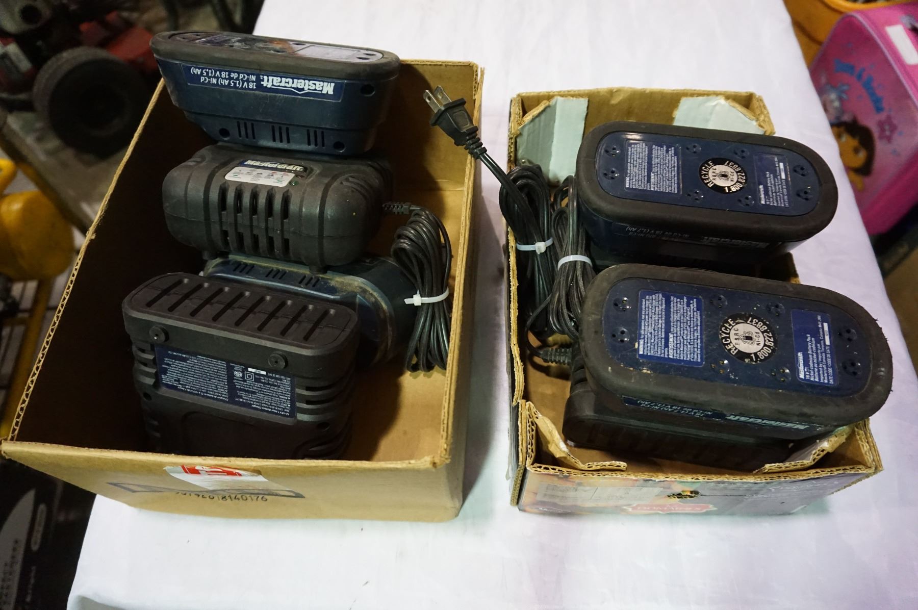 LOT OF 4 BATTERIES AND 4 CHARGERS FOR MASTERCRAFT TOOLS