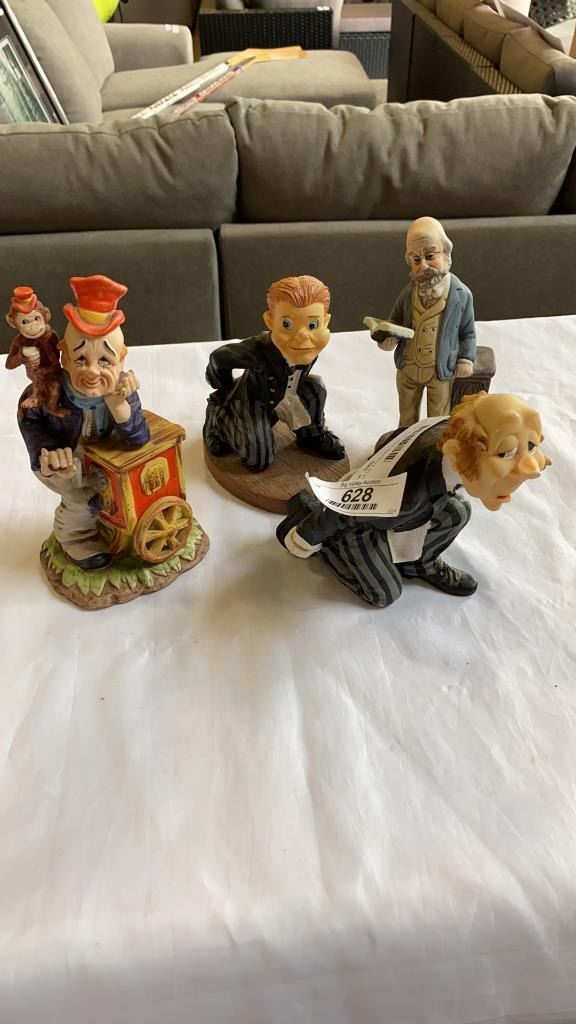LOT OF 4 FIGURES, 2 ARE WINE BOTTLE HOLDERS