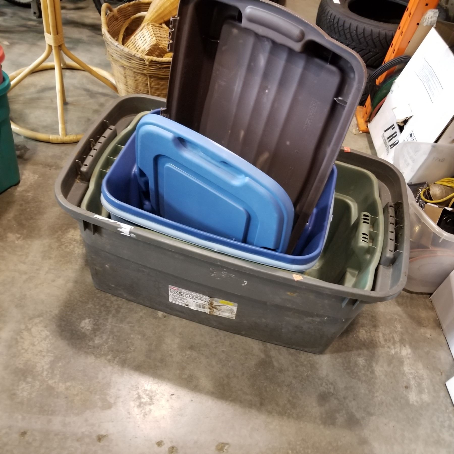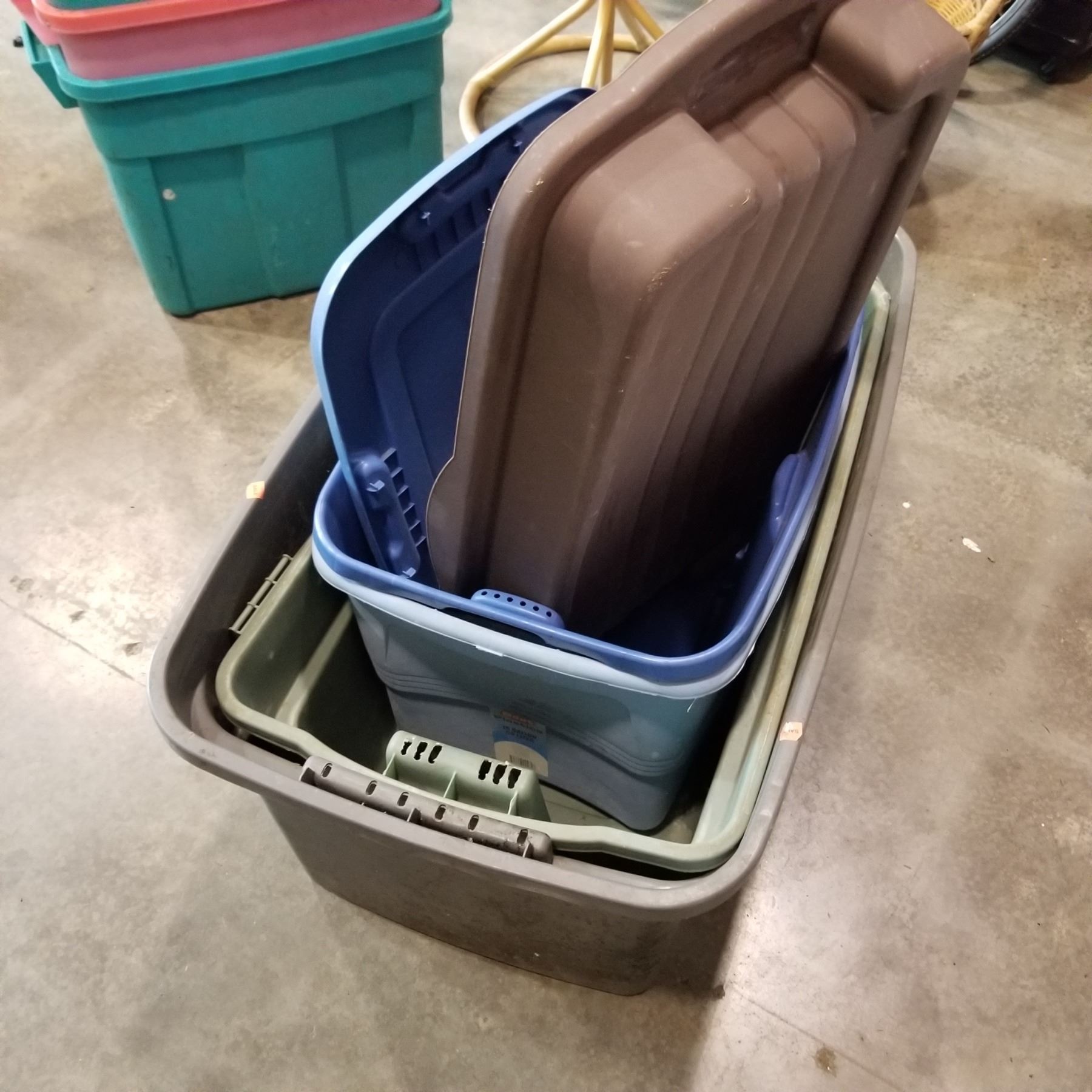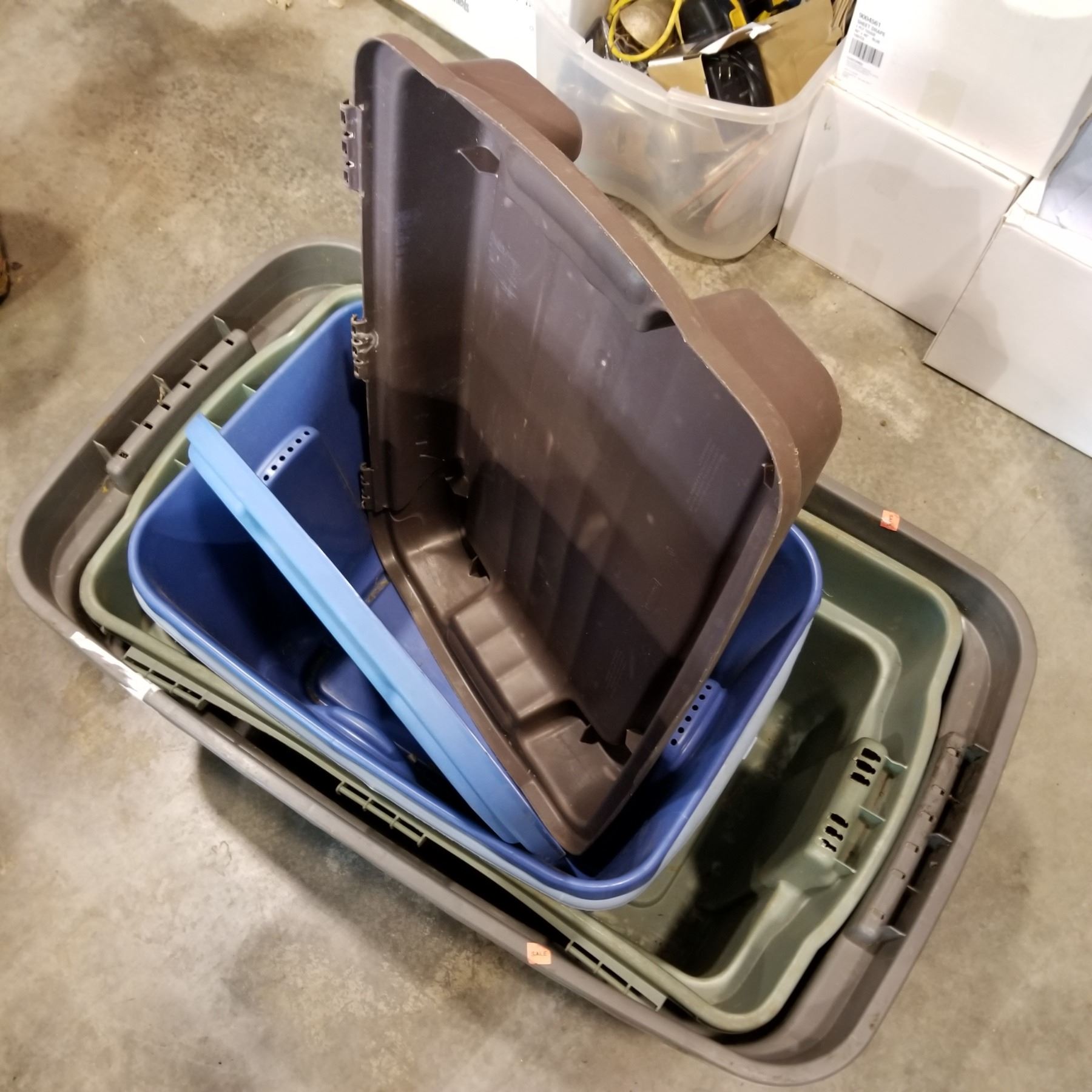 LOT OF 4 LARGE LONG PLASTIC TOTES