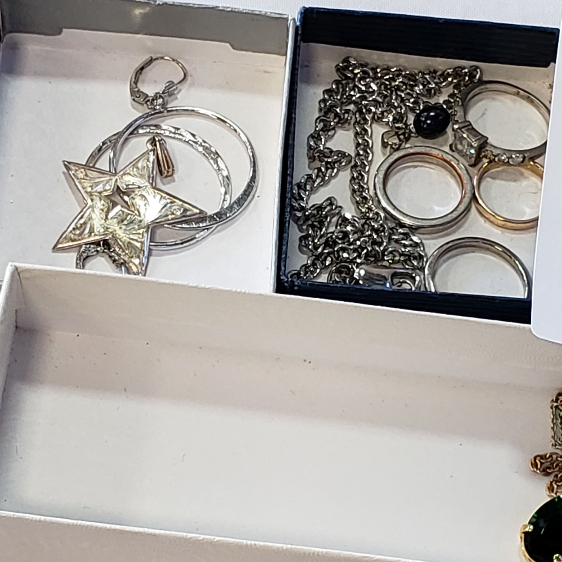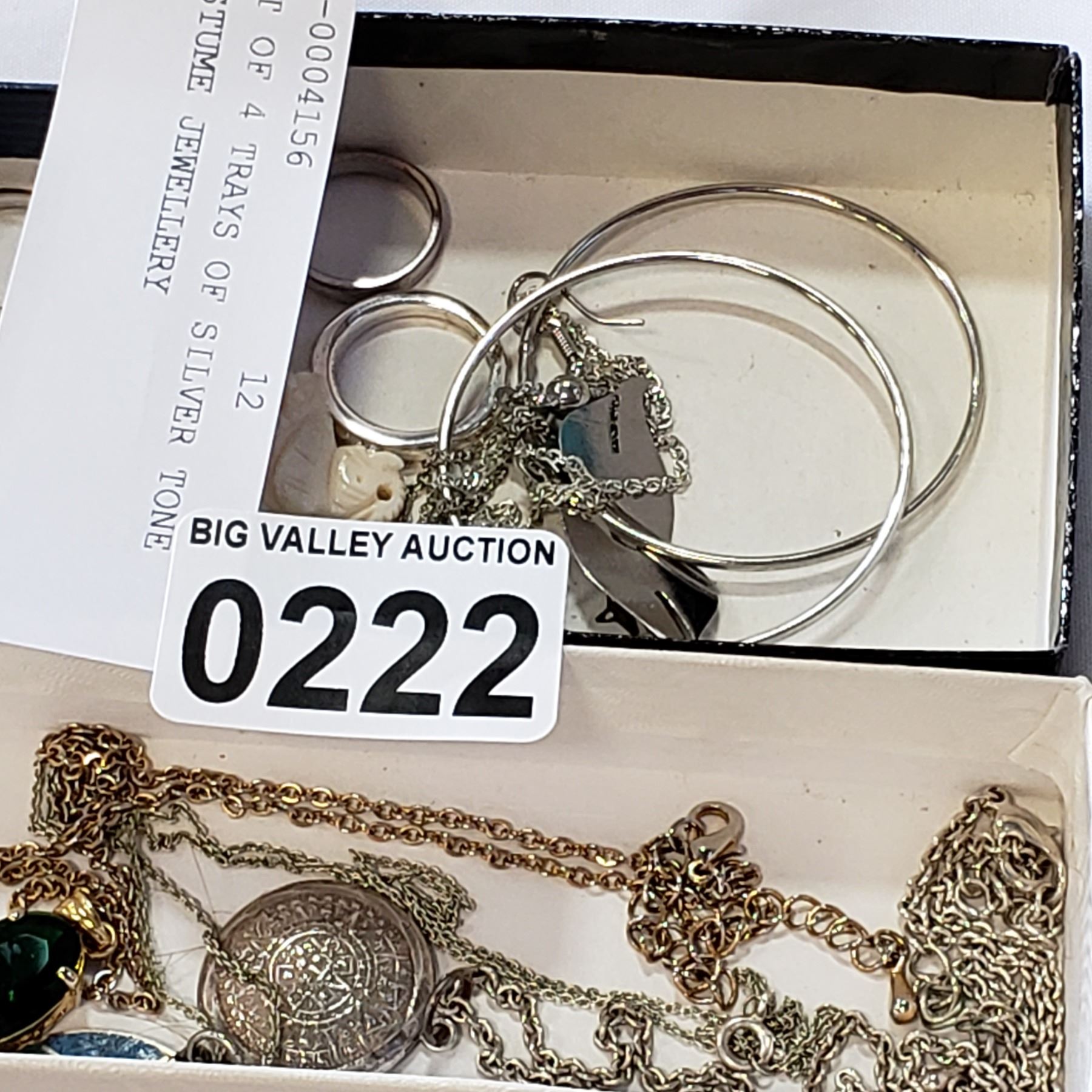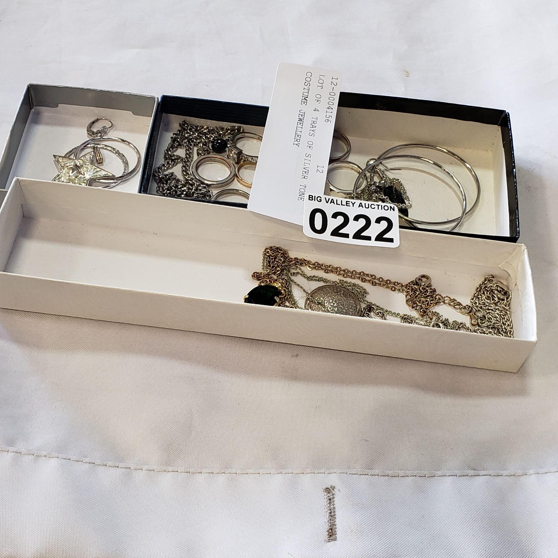 LOT OF 4 TRAYS OF SILVER TONE COSTUME JEWELLERY