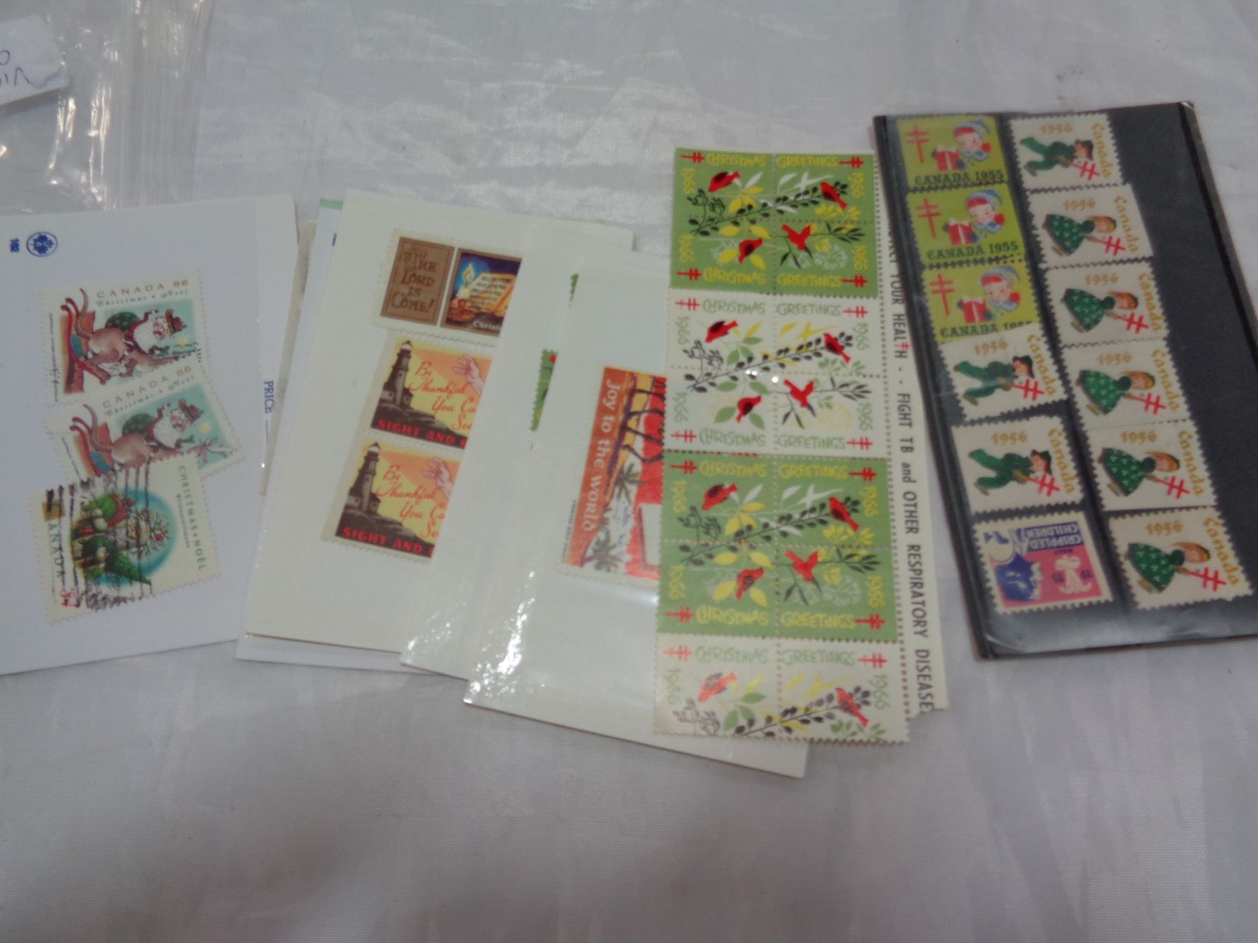 LOT OF 5 ANTIQUE POSTCARDS, VINTAGE CANADIAN CHRISTMAS STAMPS