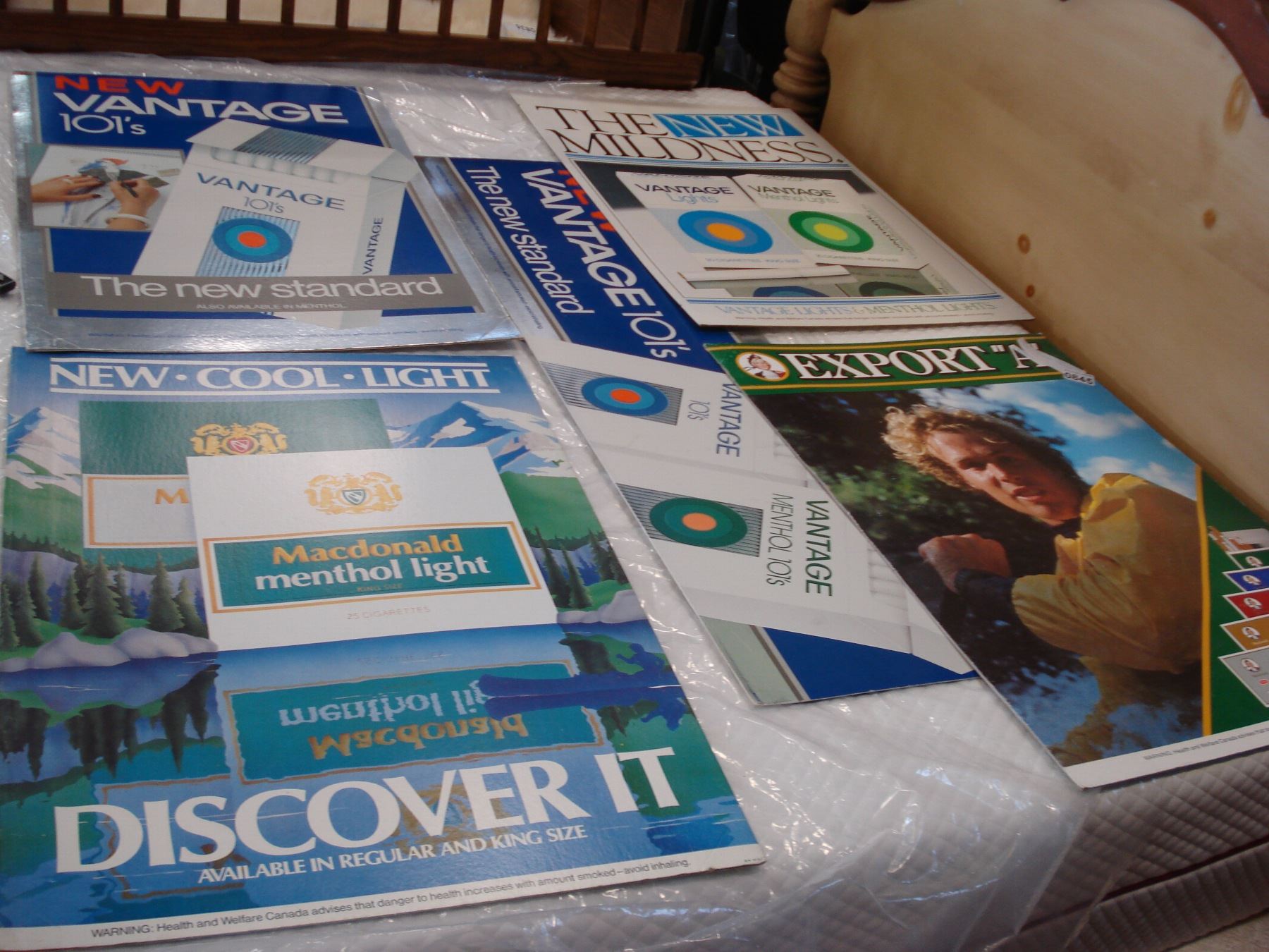 LOT OF 5 CARDBOARD CIGARETTE SIGNS