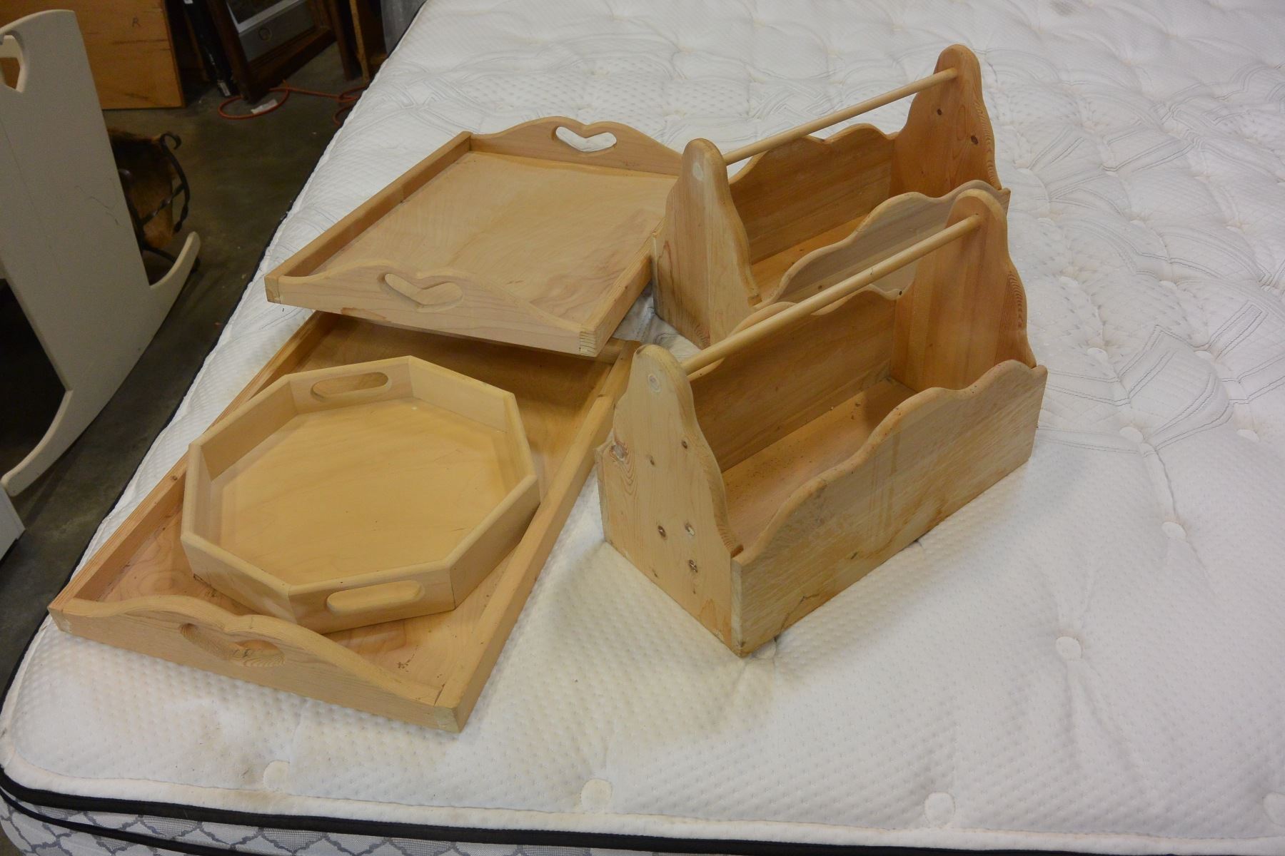 LOT OF 5 HANDCRAFTED UNPAINTED TRAYS AND BOXES