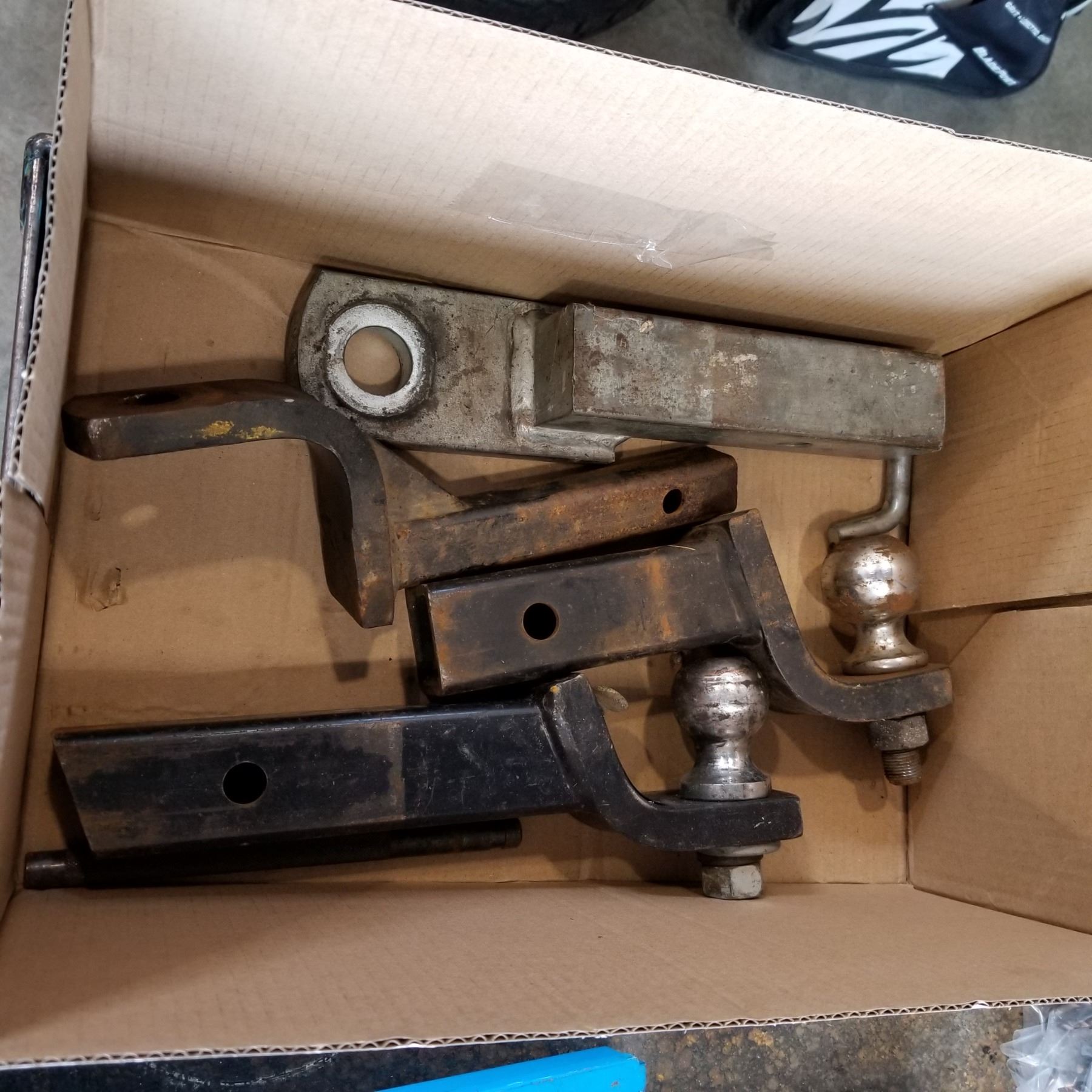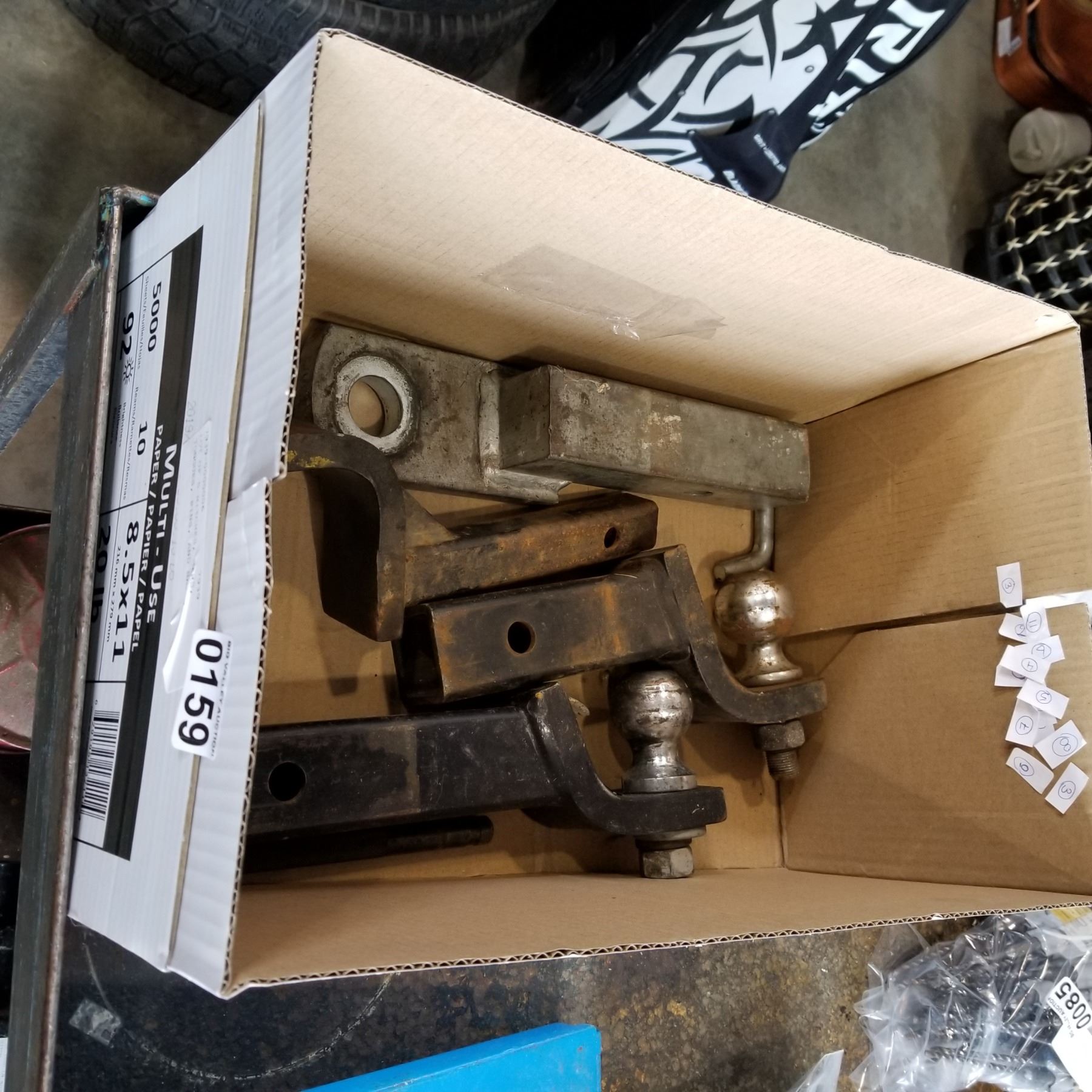 LOT OF 5 HITCHES, BARS, TONGUES, PINS, AND BALLS