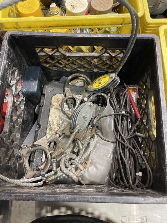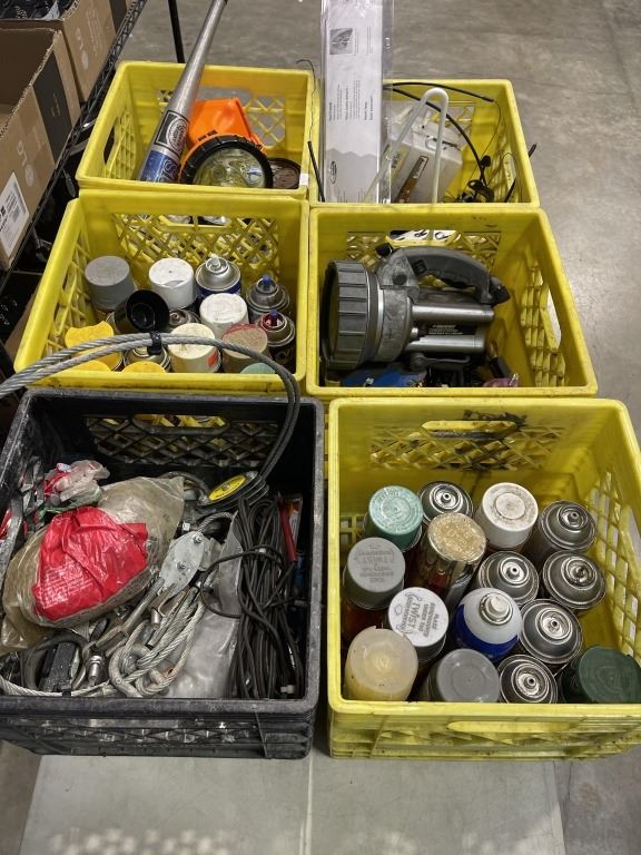 LOT OF 6 CRATES ASSORTED ITEMS FOR SHOPS