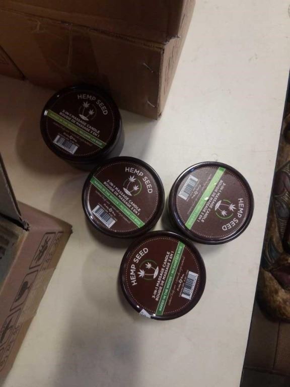 LOT OF 6 TEALIGHT HOLDERS AND MASSGAE CANDLES