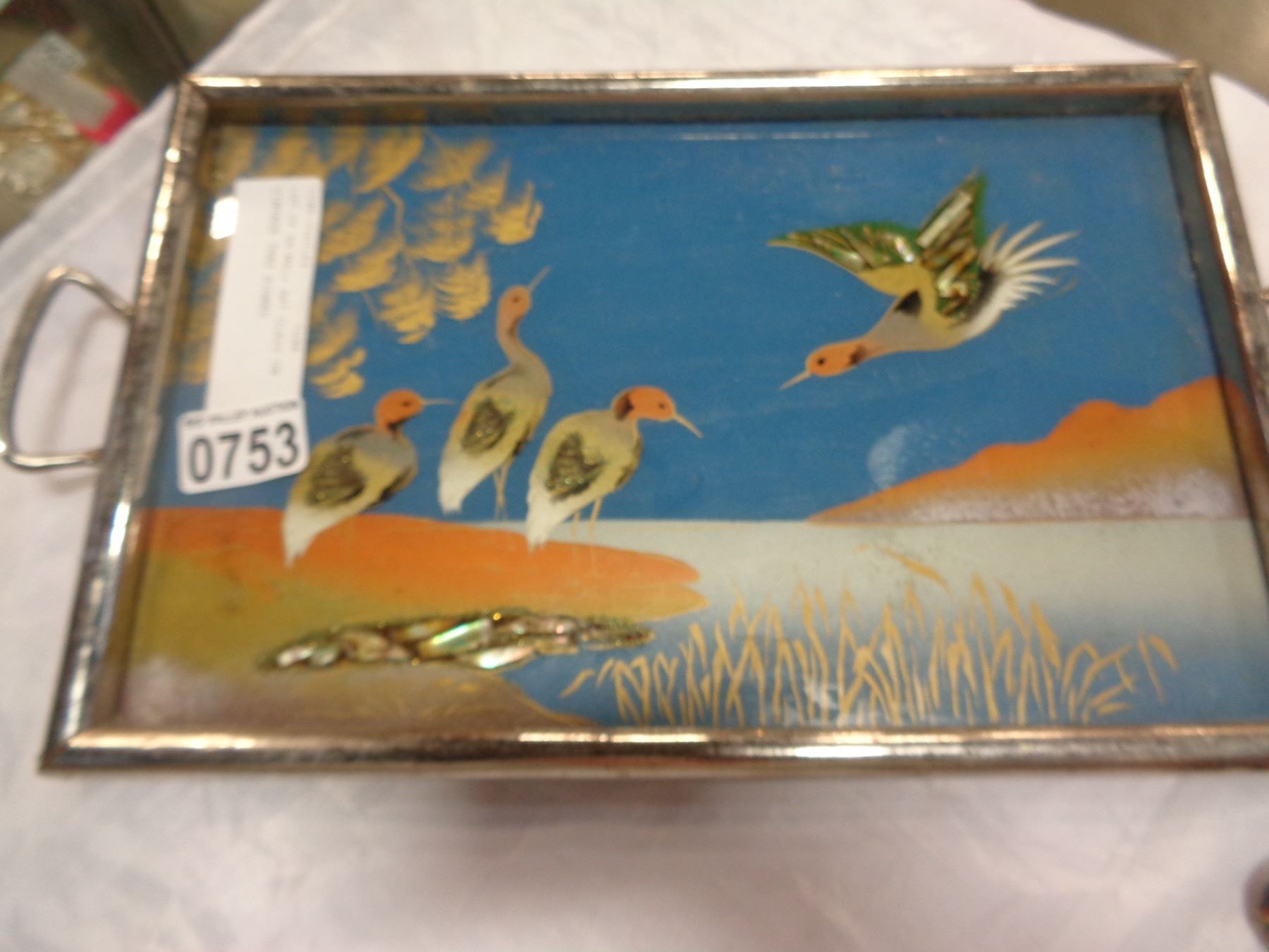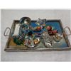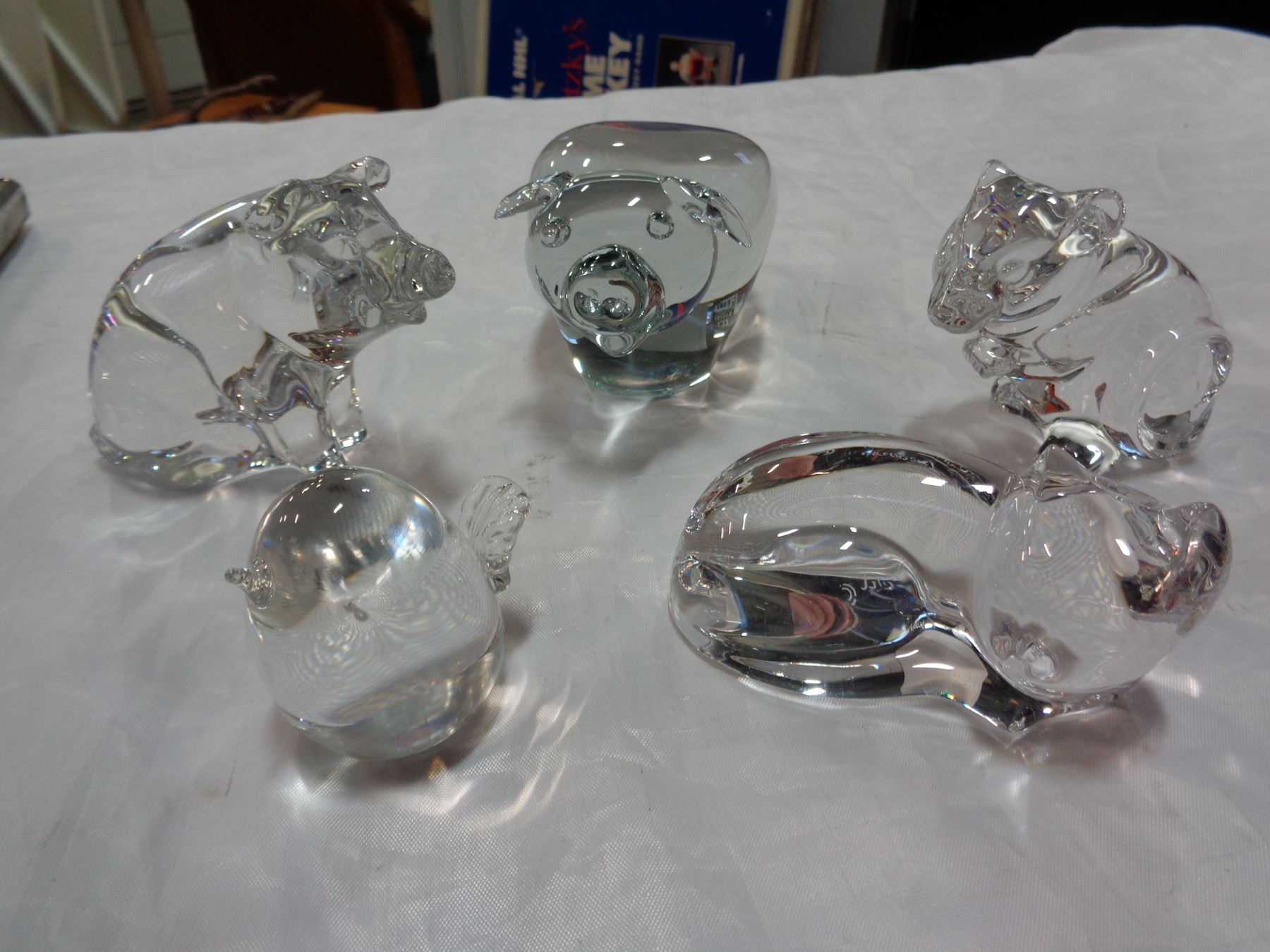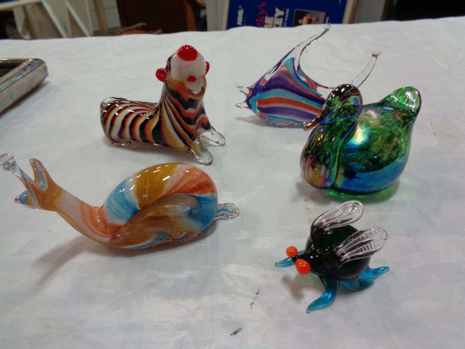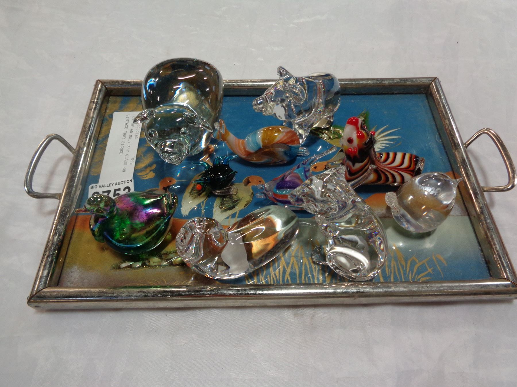 LOT OF ANIMAL; ART GLASS ON VINTAGE TRAY SIGNED