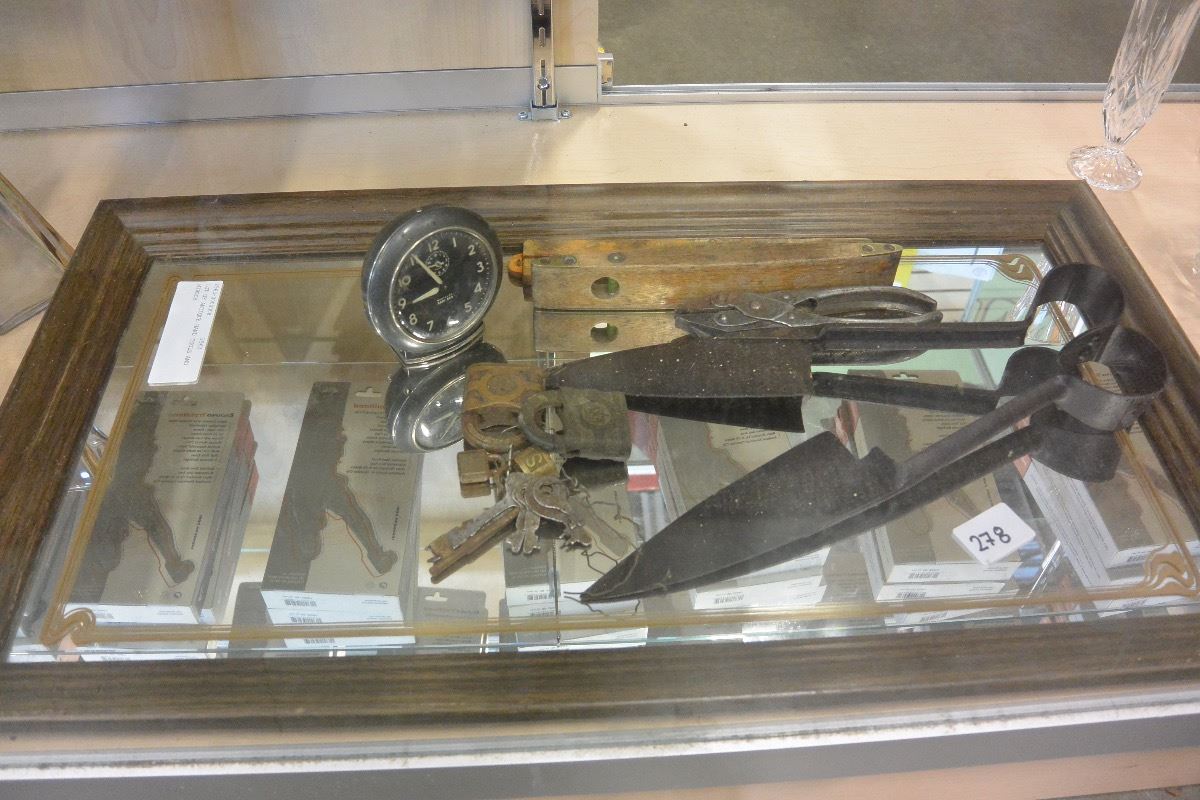 LOT OF ANTIQUE HAND TOOLS AND MIRROR