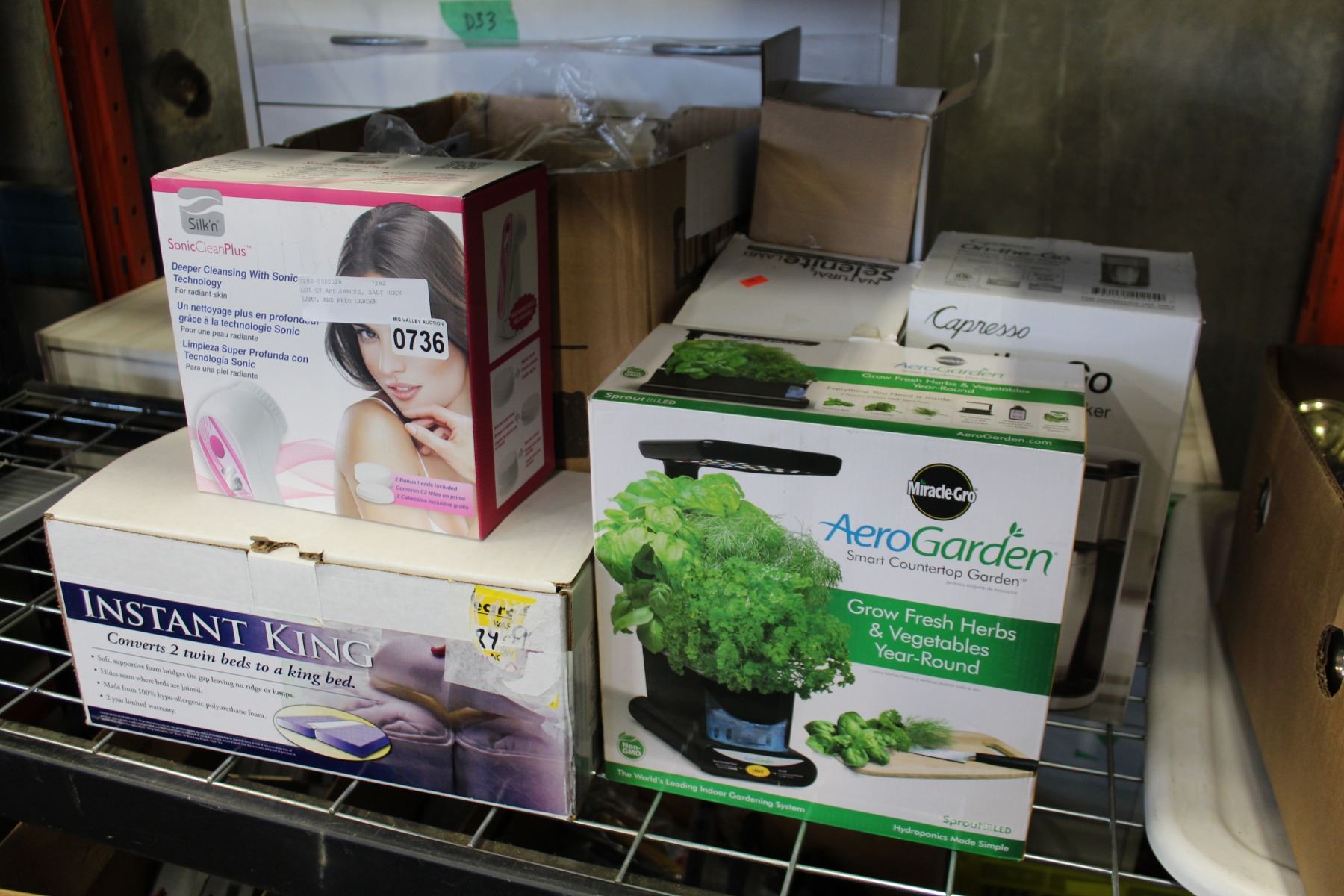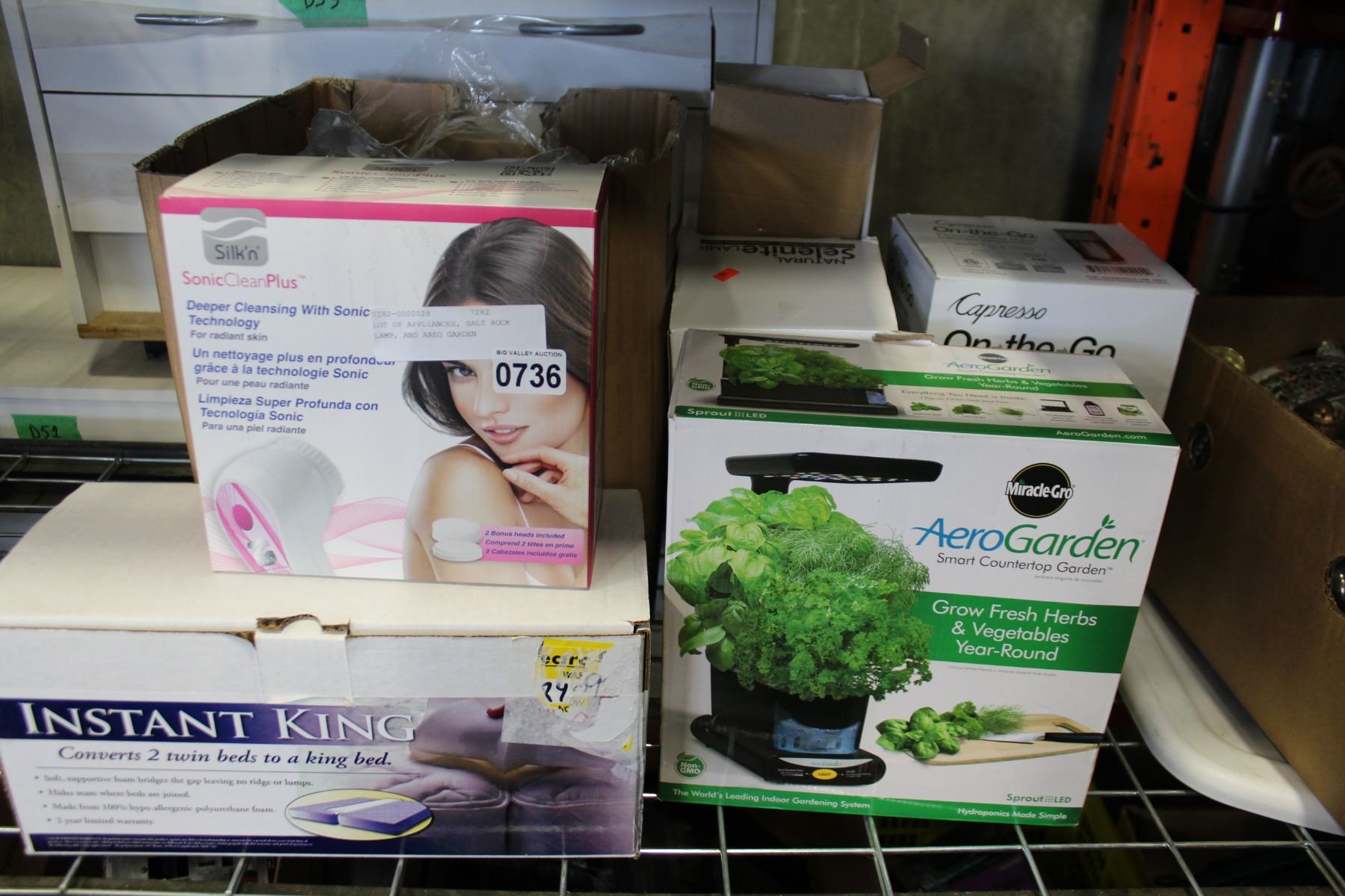 LOT OF APPLIANCES, SALT ROCK LAMP, AND AREO GARDEN