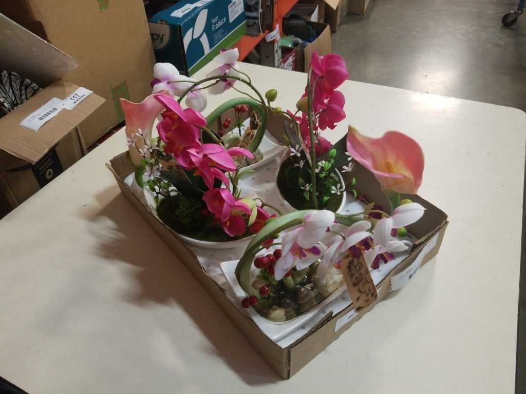 LOT OF ARTIFICIAL ORCHIDS IN CERAMIC DISHES
