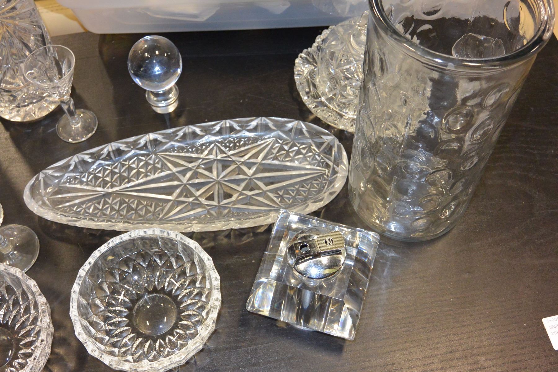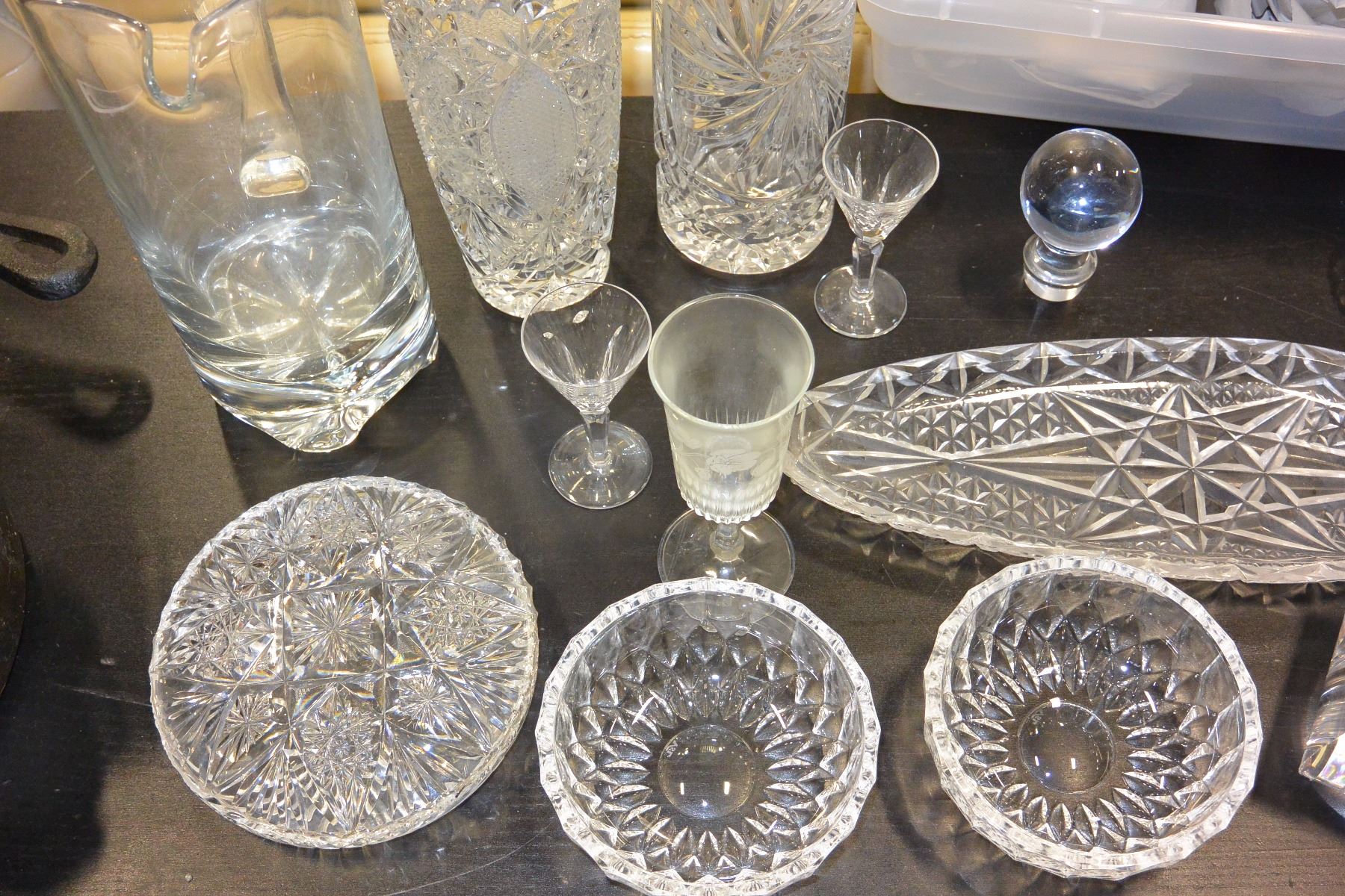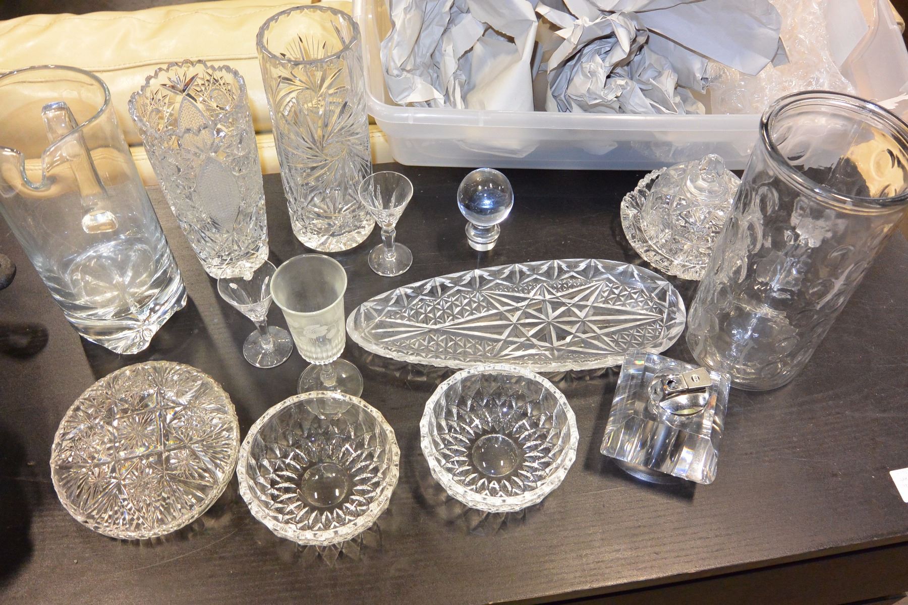 LOT OF ASSORTED CRYSTAL VASE AND SERVING PIECES ETC.