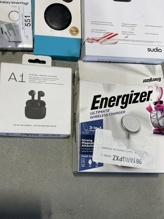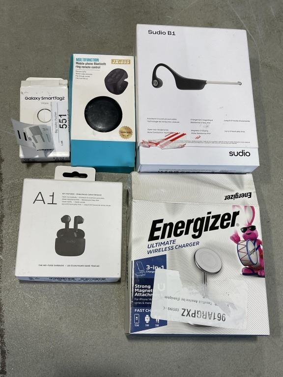 LOT OF ASSORTED ELECTRONICS - EARBUDS, CHARGING STAND, ETC