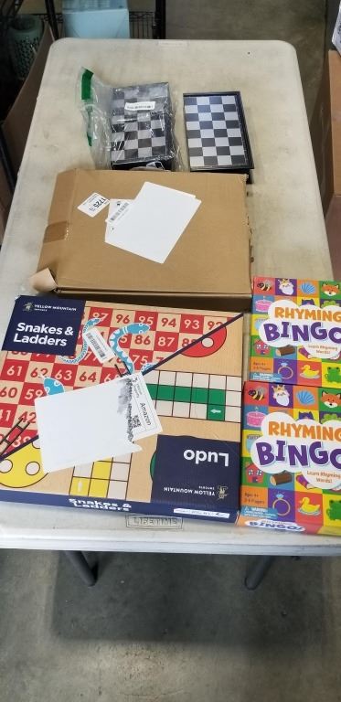 LOT OF ASSORTED GAMES INCLUDING YELLOW MOUNTAIN CHINESE CHECKERS, 2 IN 1 SNAKES AND LADDERS/LUDO 2 RHYMING BINGOS SETS, 2 CHESS SETS