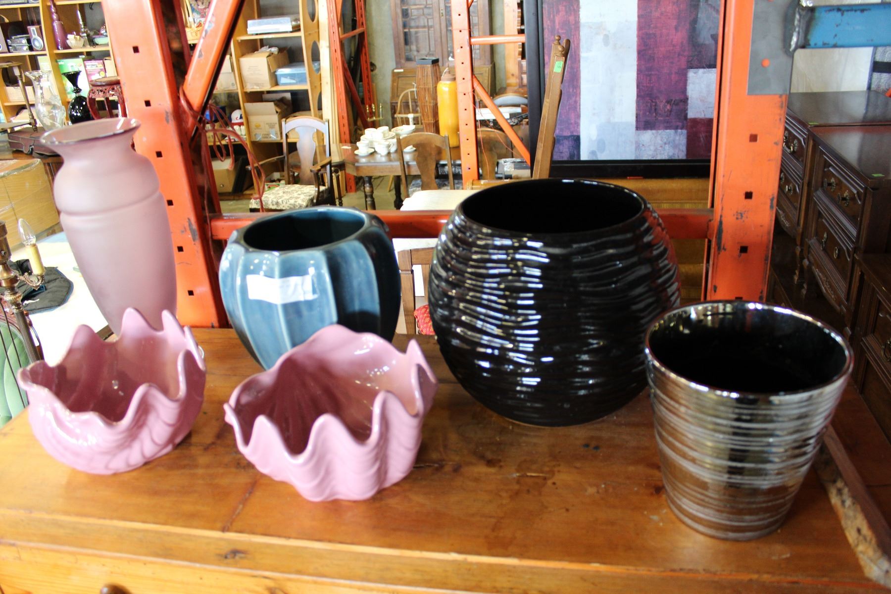 LOT OF ASSORTED PLANT POTS AND GLASS VASE