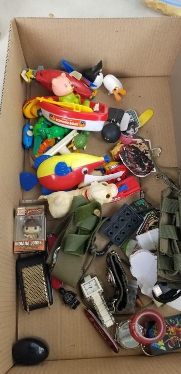 LOT OF ASSORTED TOYS INCLUDING WATCHES, SWISS ARMY KNIFE, POCKET POP KEYCHAIN