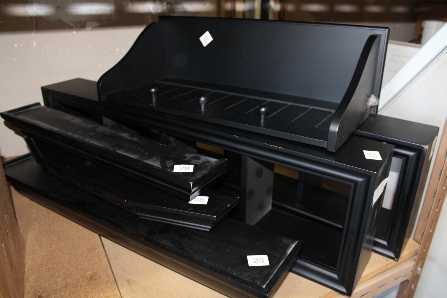 LOT OF BLACK WALL MOUNTED SHELVES
