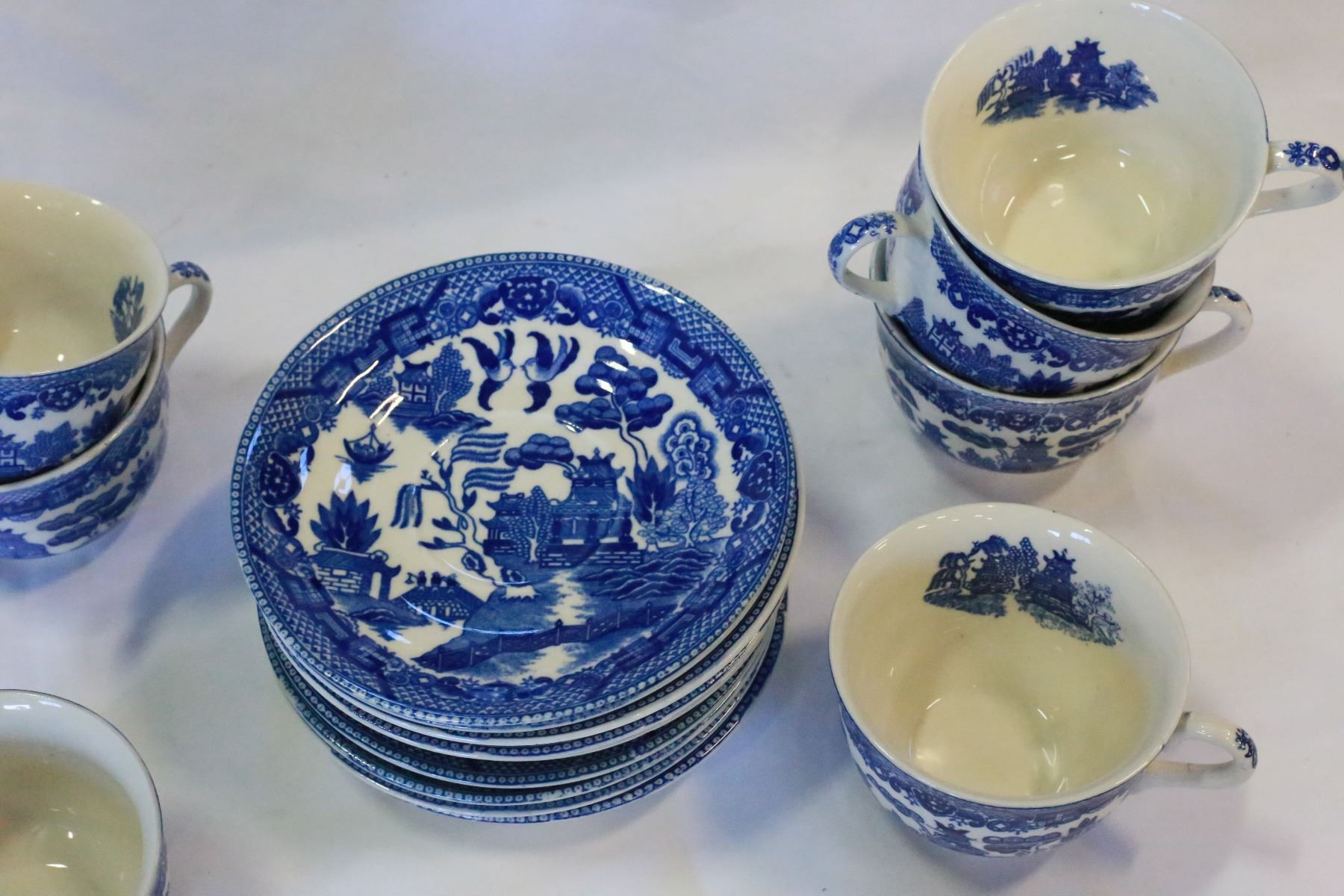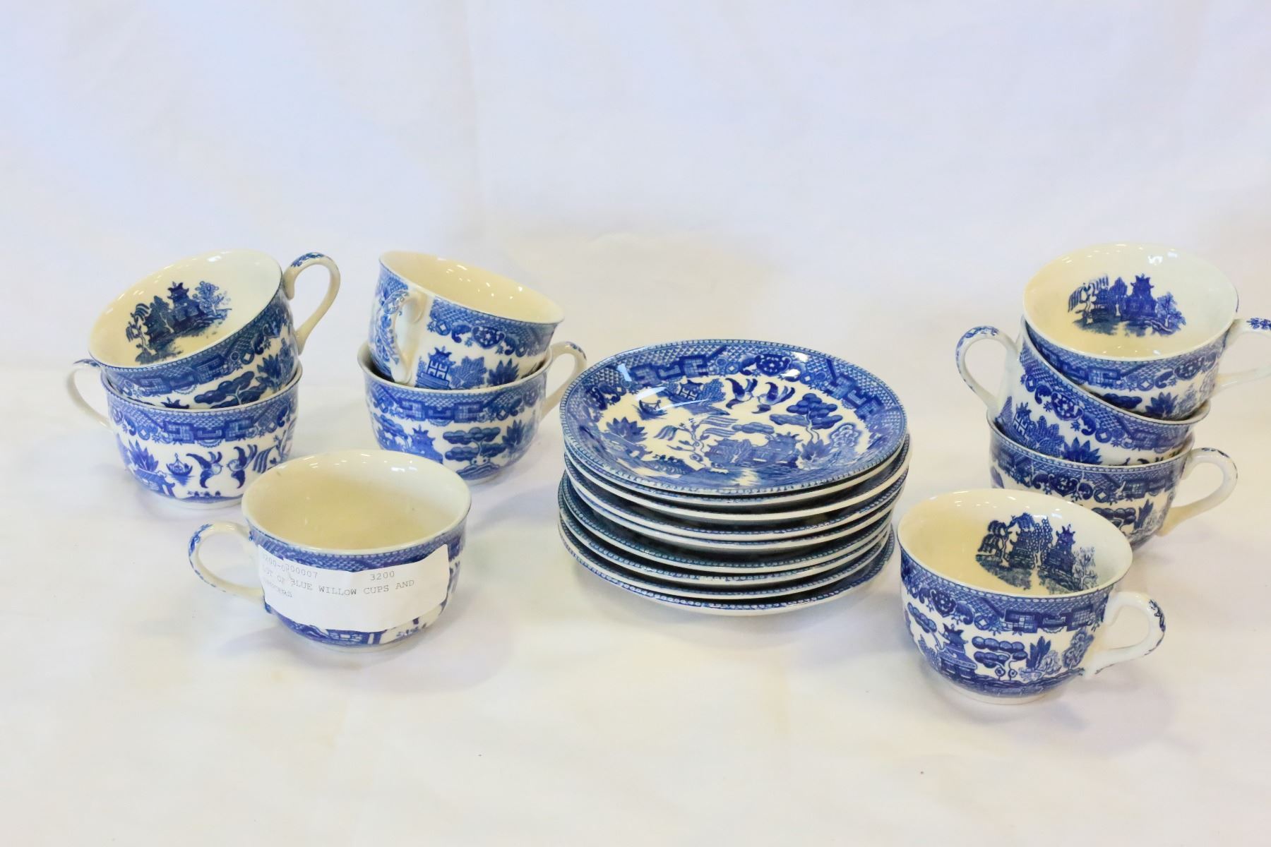 LOT OF BLUE WILLOW CUPS AND SAUCERS